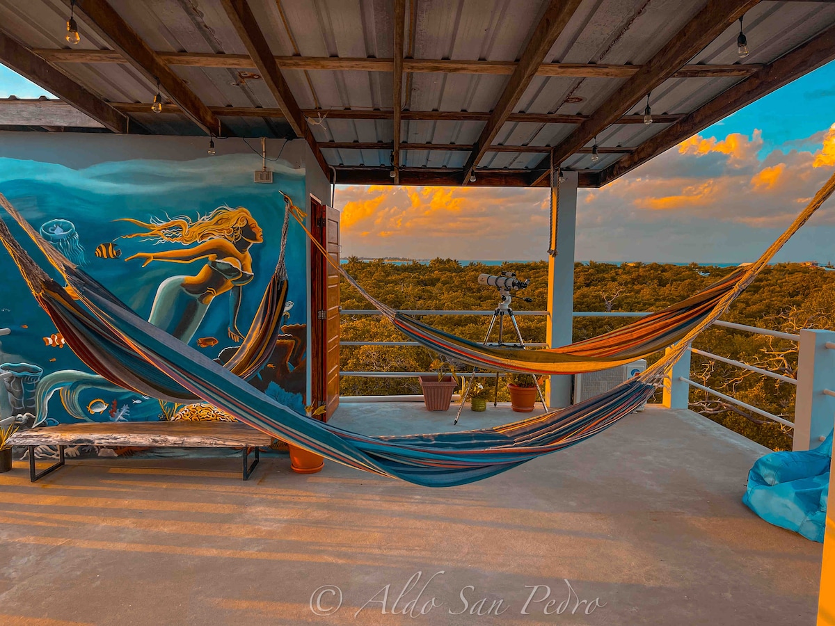 We offer a unique Eco-Chic, off grid experience to our guests that will be remembered for a lifetime. We are 100% dependent on solar energy and rain water catchment, and conservation is expected, but you’ll want for nothing. Located 10-15 min from town by bike, at the end of the golf cart path, close to the restaurants and bars but away from the crowds when you're ready to relax.