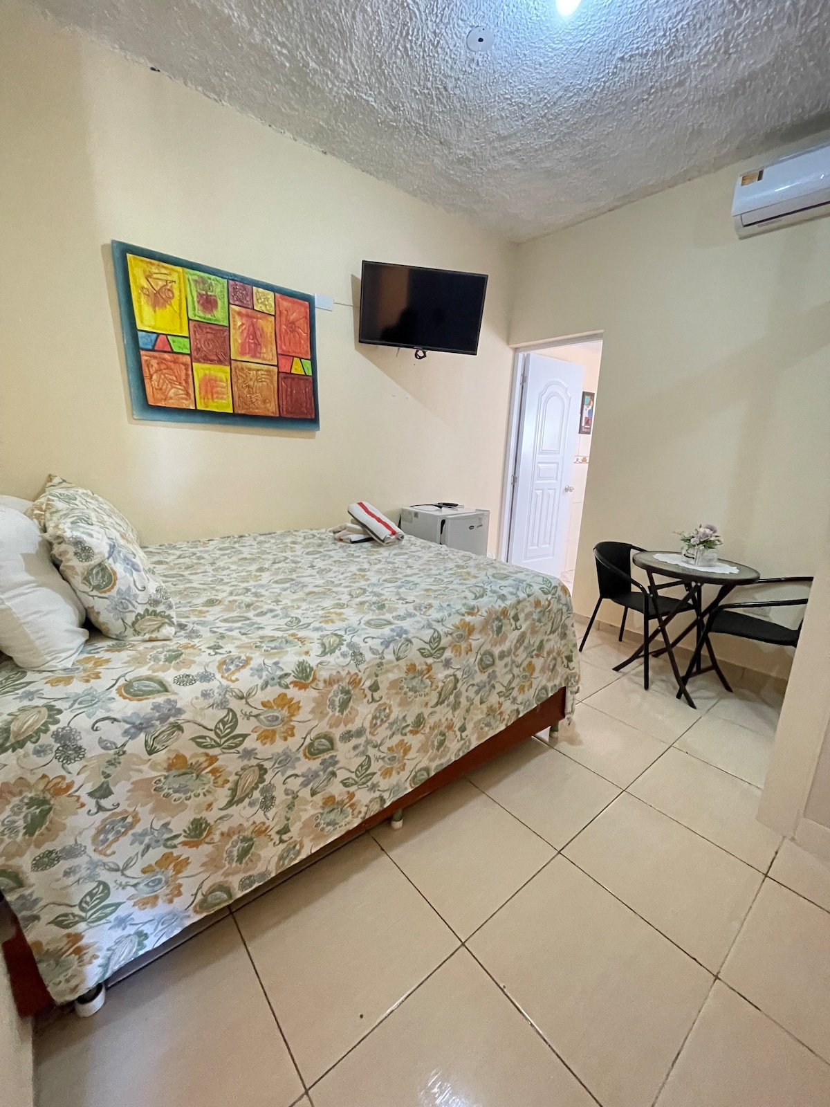 Come and discover Samaná, a paradise at your fingertips, and let us be your home while you enjoy beaches, rivers, and unforgettable excursions. Our privileged location will allow you to enjoy a truly breathtaking view. We are located on a small hill that is very easy to access. Our apartments are comfortable and safe, with a bed in the bedroom and a sofa bed in the living room, air conditioning in the living room and bedroom, a full kitchen, and a bathroom.