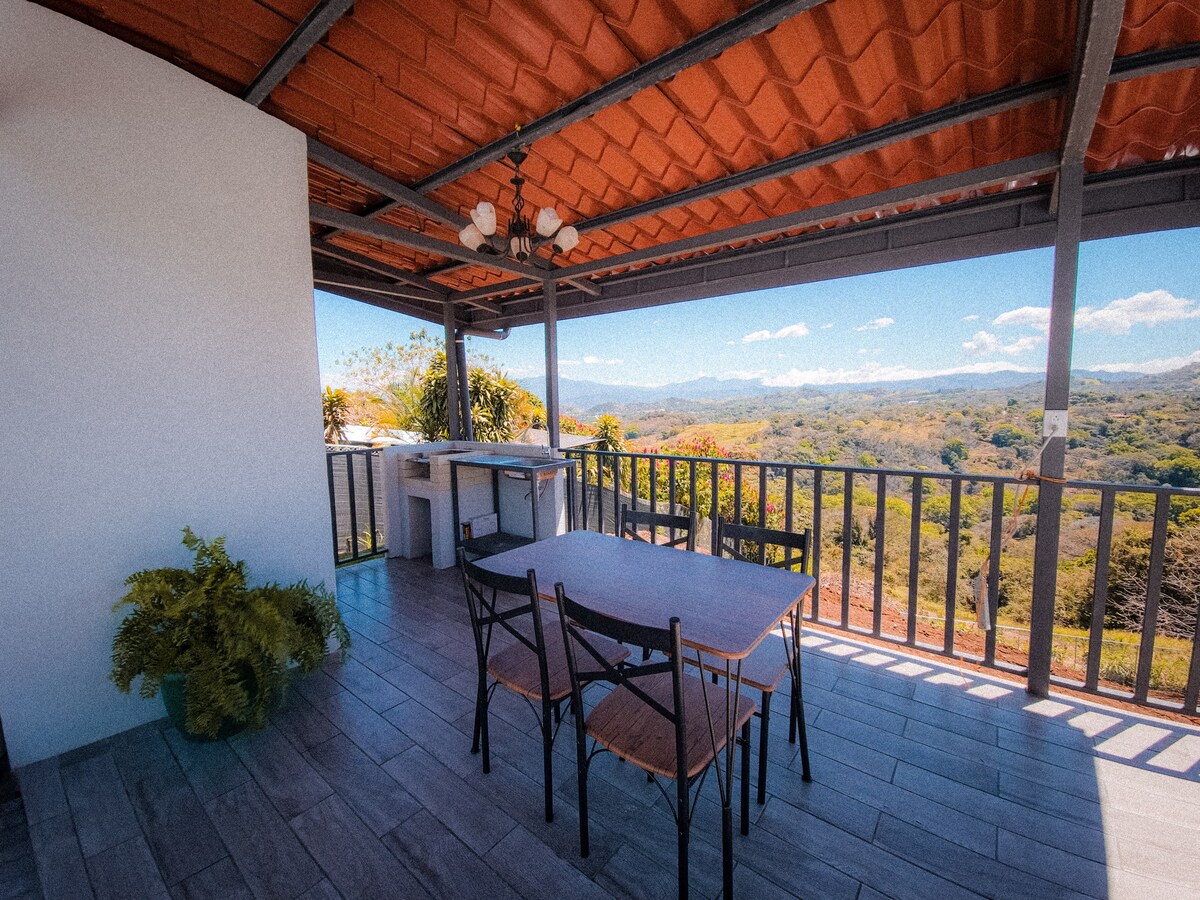 New, fully furnished house with a great view of Volcanoes and Valley! Located in a quiet community very close to Atenas downtown (4.5Km). Large master room w/ King size bed plus one guest room. Two full bathrooms. Contemporary design and decor. Large, integrated kitchen with granite countertops and all appliances. Very spacious social area with large windows and mosquitoes screens. Big terrace with deck and built-in jacuzzi. Great view all over. Service include gardener and maid (once a week).
