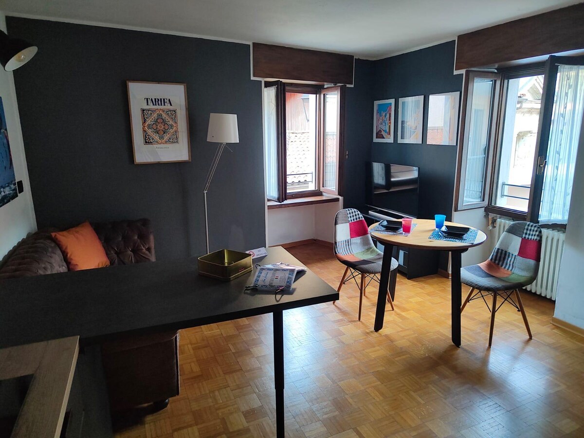 L'appartamento moderno e accogliente con parcheggio privato recintato gratuito, garage per bici e attrezzatura e ampio giardino con bbq e gazebo. Situato al 2° piano con ingresso autonomo, camera con 3 posti letto, open-space con cucina e soggiorno con divano letto matrimoniale, bagno finestrato con doccia walk-in e ampio balcone vista montagne. Attrezzato di lavastoviglie, lavatrice, macchina Nespresso, Wi-Fi e Smart TV. Ospita fino a 5 persone.