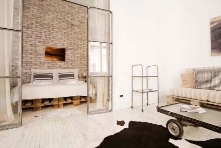 Have you ever dreamed about an artist's extravagant studio? Feel the vibe and try a famous Hungarian painter Lajos Vajda's renewed studio loft, facing the city biggest park Városliget. Park for free in our underground garage and cook in our kitchen with striking wood cabinets and exposed brick. A factory-chic chandelier hangs above a modern dining table while a living area basks in natural light from industrial windows. Beautifully designed in 100 -years-old house, near to Heroes square.