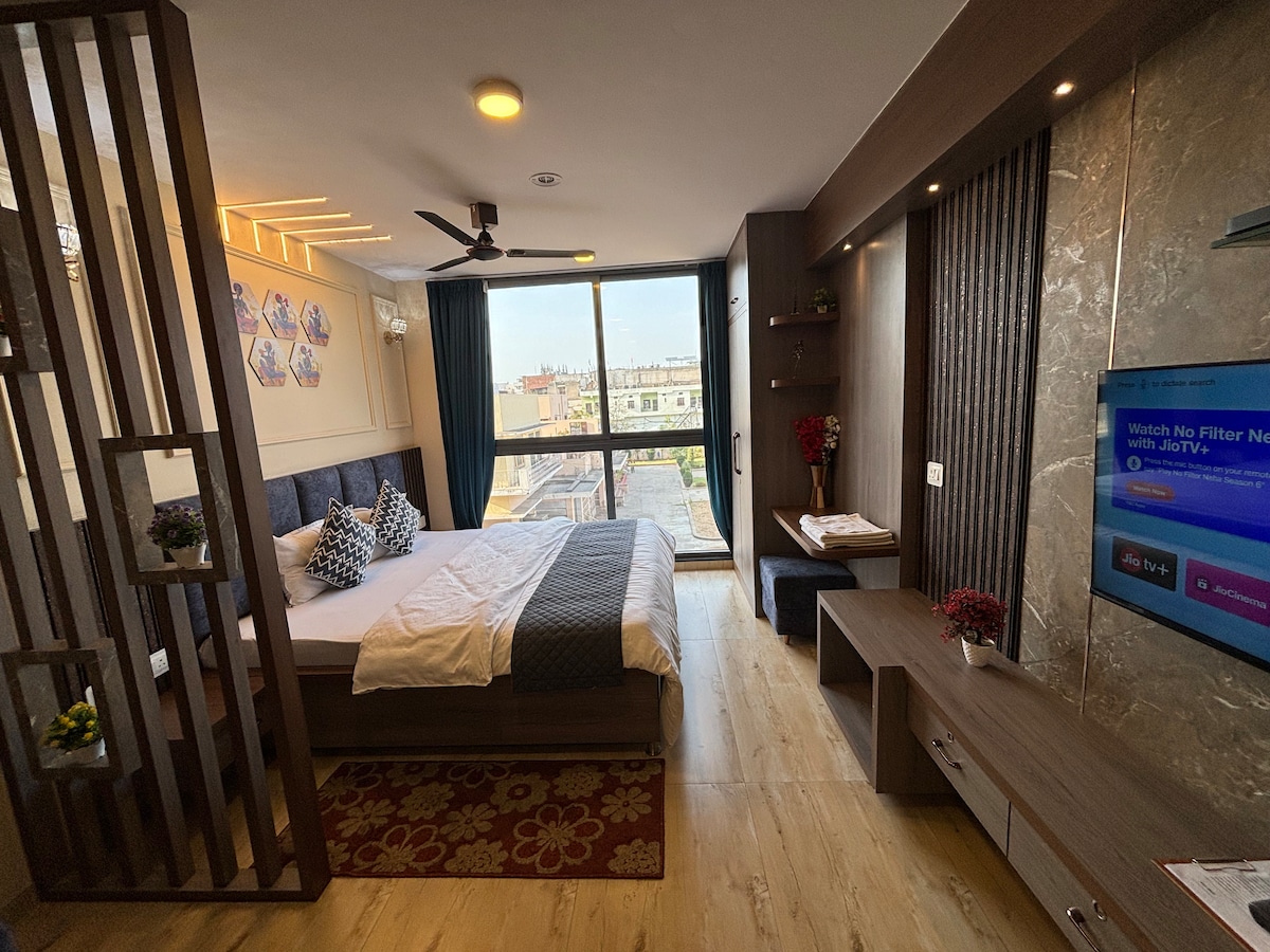 " The Pink Sands" – A Stylish and Serene Studio in the Heart of jaipur is centrally located, giving you effortless access to Jaipur’s iconic attractions: Excellent Connectivity Just 20 minutes from Jaipur International Airport 5 minutes from Jaipur Railway Junction 5 minutes from Jaipur Bus Stand (Sindhi Camp) Guest Access You’ll have access to all essentials including fresh linens, and kitchenware making it the perfect home , whether you're working remotely or simply looking to unwind.