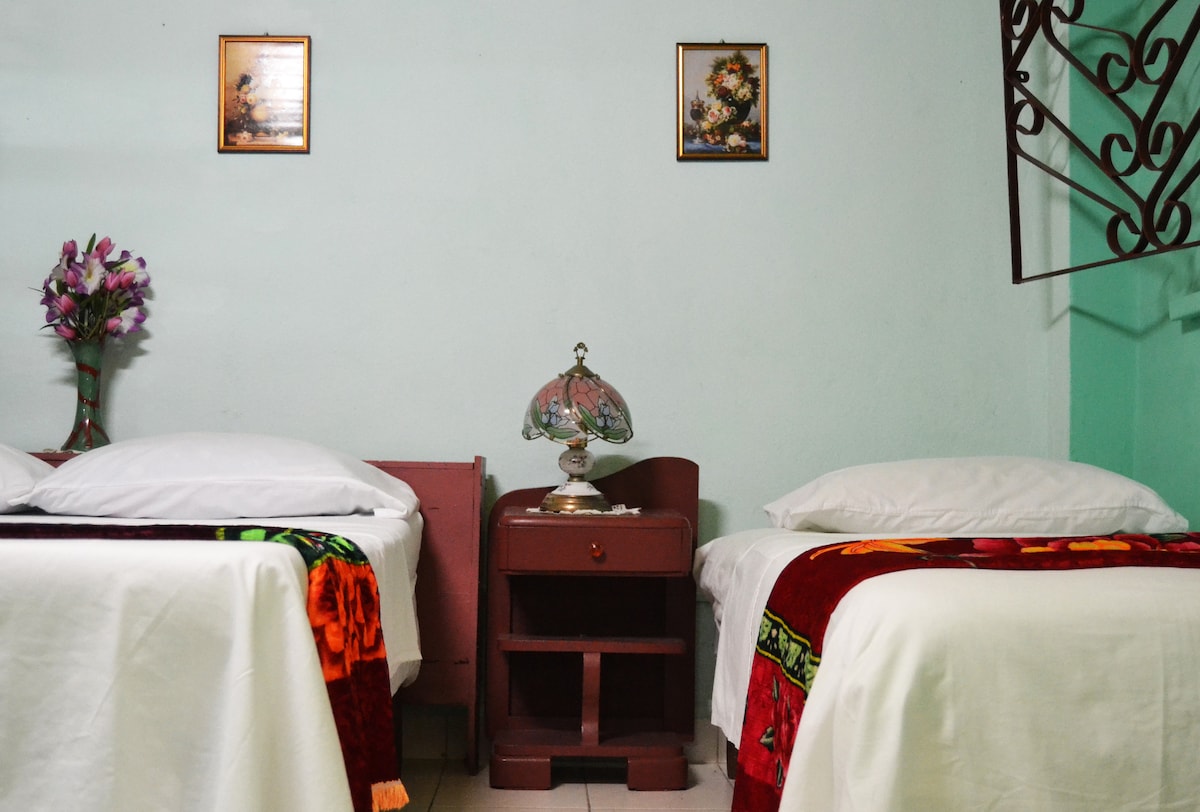 Private room with 2 beds and capacity for 3 people very close to Boulevard de Obispo in the center of Old Havana. You have all the privacy in an area of the apartment allowing your entry and exit with the house keys. It has a living room and kitchenette or American kitchen in the exclusive guest area. This accommodation serves as a starting point for touring the city. During your stay you will feel comfortable and can always count on the attention of your host.