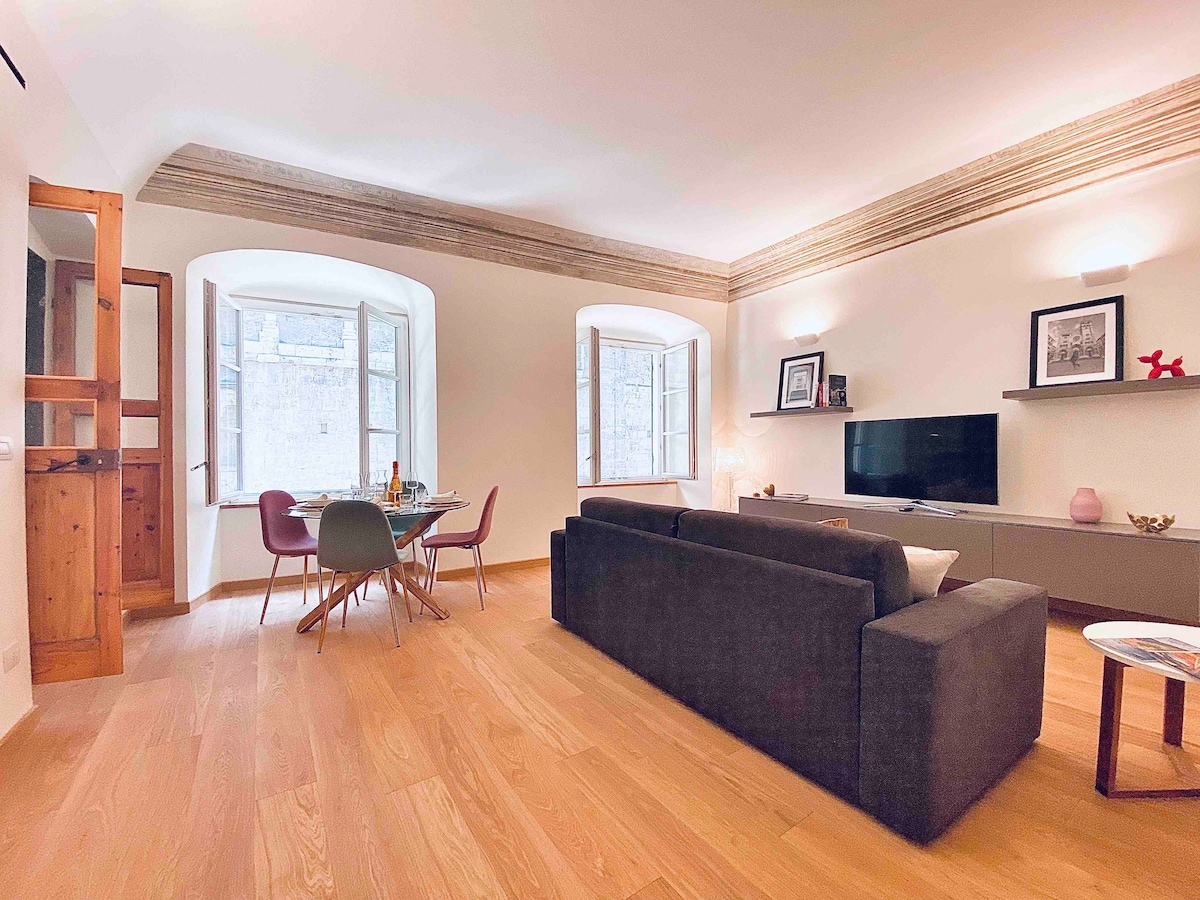 Rox Apartment is ready to welcome you for an exclusive stay in a completely restored Rolli building "Palazzo Pellicceria". You will experience the pleasure of sleeping in a 16th-century building. The apartment is on the second floor and has just been renovated in its entirety. The building has an elevator. You can also take advantage of the common area on the second floor, which features a gym and relaxation area.