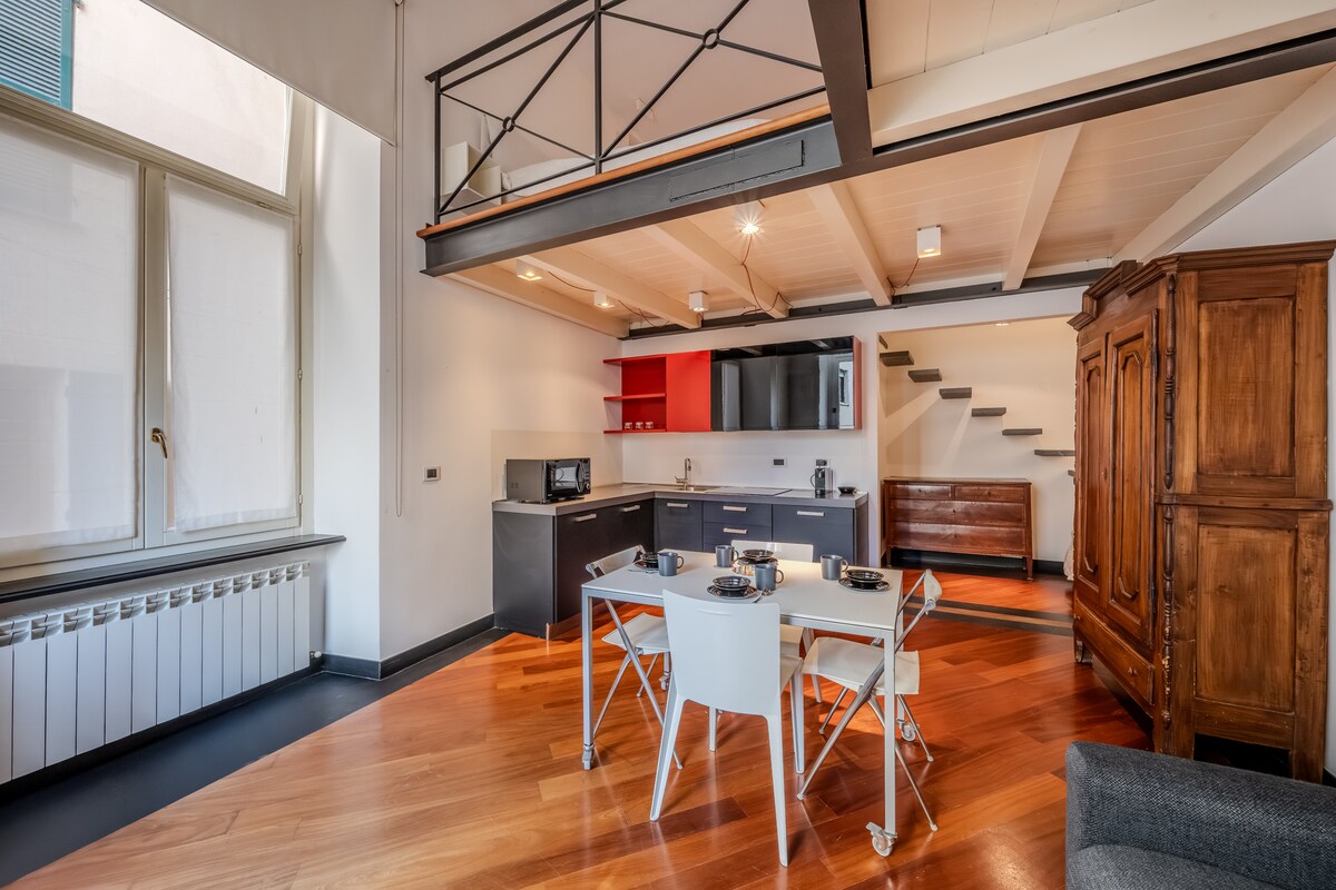 Relax in the romantic atmosphere of this bright apartment with a bohemian soul, with a panoramic view over the city's rooftops. Right in the heart of the historic center, in a quiet and peaceful setting, 150 meters from the sea and open air life. Ideal location for those traveling by train (Acquarium) and for travelers looking for the true Genoese experience: walking in the maze of its alleys full of life and shops. Located at the top of a tower with a lift, in a pedestrian area.