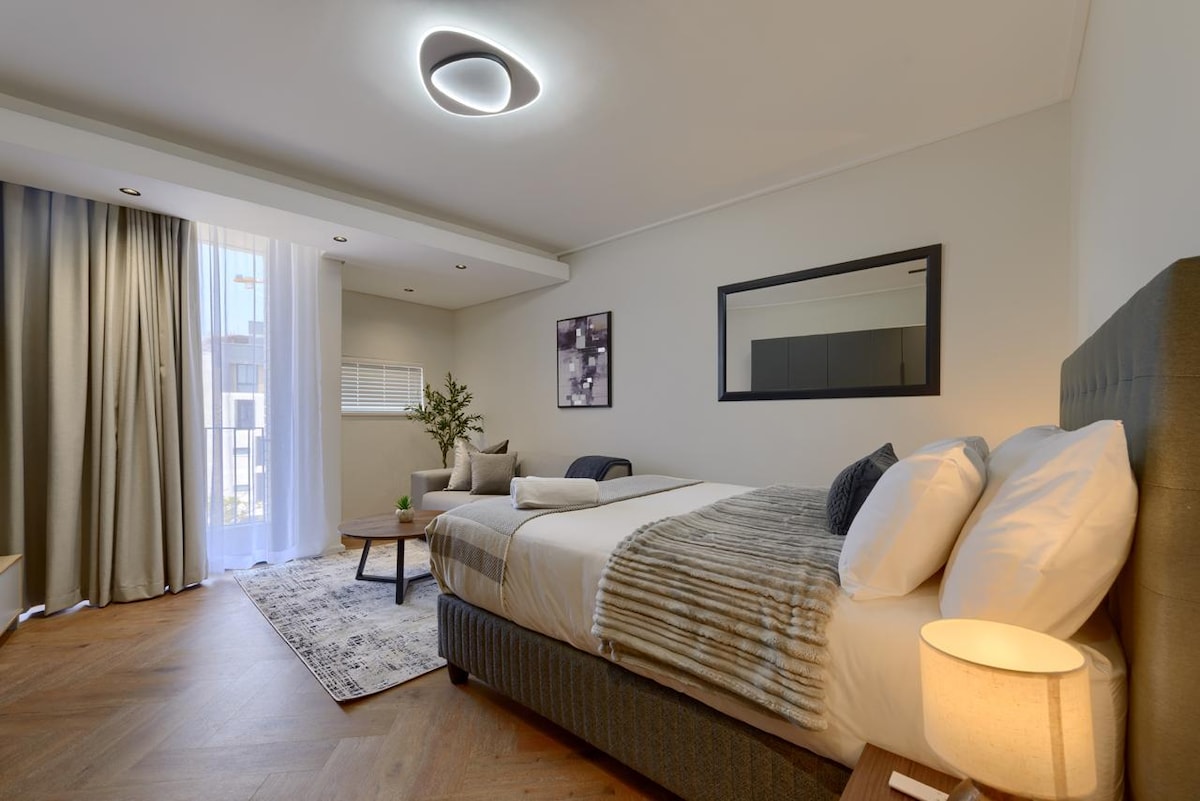 Enjoy a stylish experience at this centrally-located apartment in Century City. Easy and convenient access to Canal Walk shopping centre, Spa's and restaurants. The apartment has a front patio with seating areas. Both front and back patios are beautfully layed out for breakfast or a romantic dinner. TV includes Amazon Prime and Disney+. Theres Hi-Speed internet, WiFi. The bathroom has a full bath, shower and double basin. The bedroom has a large king bed with a vanity area or workspace.