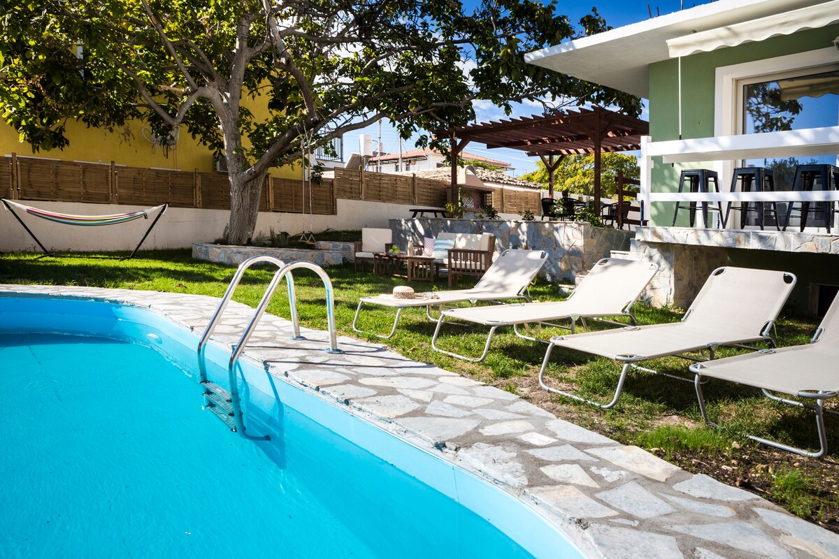 Fully equipped luxurious 3 bedroom cottage with private pool conveniently located in the heart of Skala town on the South coast of Kefalonia. This holiday will surely be a memorable one especially for people looking for a peaceful and quiet environment, while being in an active neighborhood. Numerous attractions and things to do at your doorstep, with Skala beach just a stroll away.