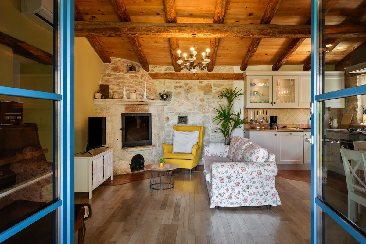 You will step into a heart of Istria for a moment. The accommodation consists of two smaller houses, 2 bedrooms, a bathroom and a pool house with an additional sleeping gallery for two and one more bathroom. Accommodation capacity is up to 6 people and ideal for 4 people, for a family, two couples or friends. Heated pool. One house has two bedrooms with a capacity for two people each, bathroom, living room and kitchen. The second house has one more kitchen, a bathroom and a sleeping gallery.