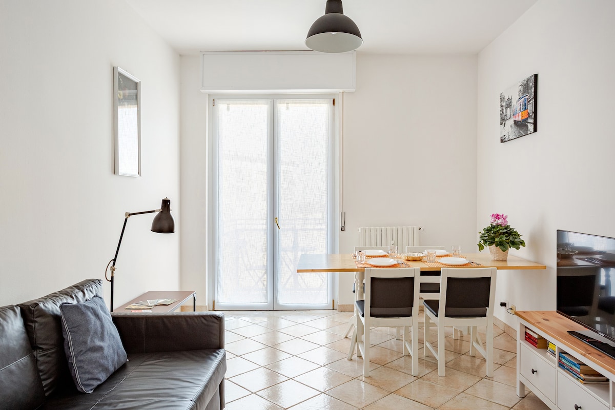 Bright two-room apartment | Up to 4 guests Located in the heart of Rho, it is a modern and cozy two-room apartment, perfect for visiting Milan and Rho Fiera. It has a living area with an equipped kitchen, a dining table and a sofa bed, a quiet double bedroom with ample space, and a bathroom with a shower and accessories. Wi-Fi, air conditioning, TV, washing machine, and complimentary toiletries are included. A few minutes' walk from the station, with quick connections to Milano Centrale and the fair.