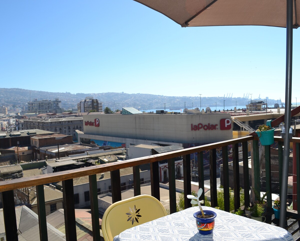 Open-Air Loft. We are in the middle of an open-air museum in Cerro Bellavista, where you can find paintings by renowned artists. You will stay in a great viewpoint towards the coast of Valparaíso, days of sea air and enjoying the sunset. It's ideal for couples or telecommuting because it has comfortable spaces, fast wifi internet, its own 400mbs router. It can also be extended to four people (double bed + sofa bed equipped for two). Located in a cultural and gastronomic neighborhood.