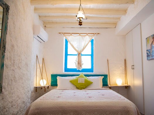 You see photos of 2 types of rooms. For reservations for two, a room with a double bed is given. To get a room with a double bed and a single bed, you must book for 3 people. Our boutique hotel in Alaçatı Hacımemişte consists of 5 rooms and is in a central location. It is a 150-year-old historical stone house. It is very clean and well-maintained. Each room has a television, air conditioner, coffee machine and hair dryer. Towels, shampoo, slippers and care products are renewed every day.