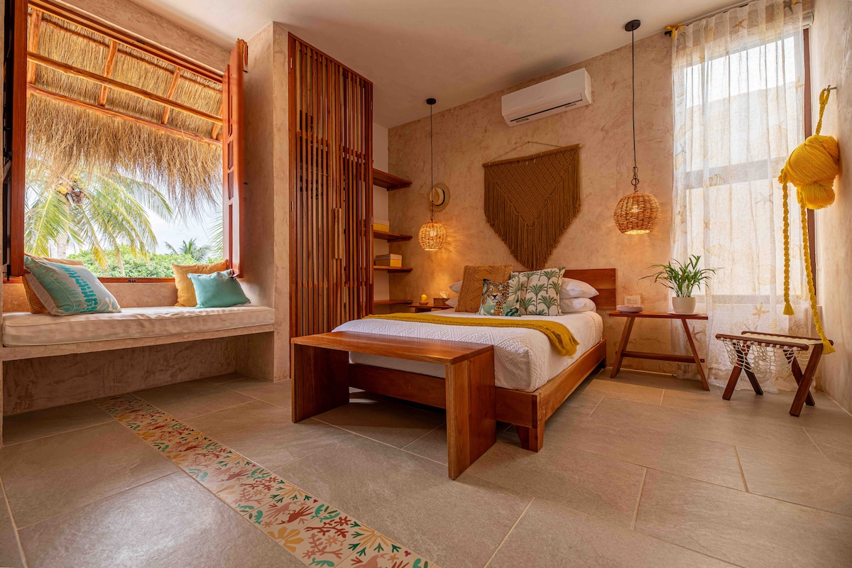 Villa Lujosa decorada vibra "Tulum" con acabados y muebles de lujo. Perfecta para unas vacaciones frente al mar Disfruta la terraza y una pequeña piscina para refrescarte saliendo del mar. Duerme la siesta en una hamaca con una espectacular vista desde la habitación principal y disfruta el sonido de la naturaleza. No cobramos energía eléctrica y tenemos generador de energía para emergencias, así que nunca te quedaras sin energía y sin aire acondicionado, que por cierto tenemos en todos lados :)
