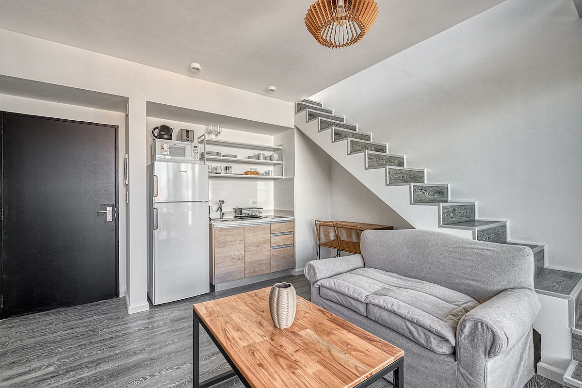 Located in the hart of Palermo Hollywood, this two-story apartment will show you one of the most astonishing views of Buenos Aires. The apartment has one bedroom with a double bed, complete bathroom and a toilette, a workspace desk, equiped kitchen and both a balcony and a private terrace. For the stay of a third guest, the living room sofa can be used as a bed. The building has a common lounge, laundry room and a terrace with a small pool. Gastronomic offer is top-notch in the neighborhood!