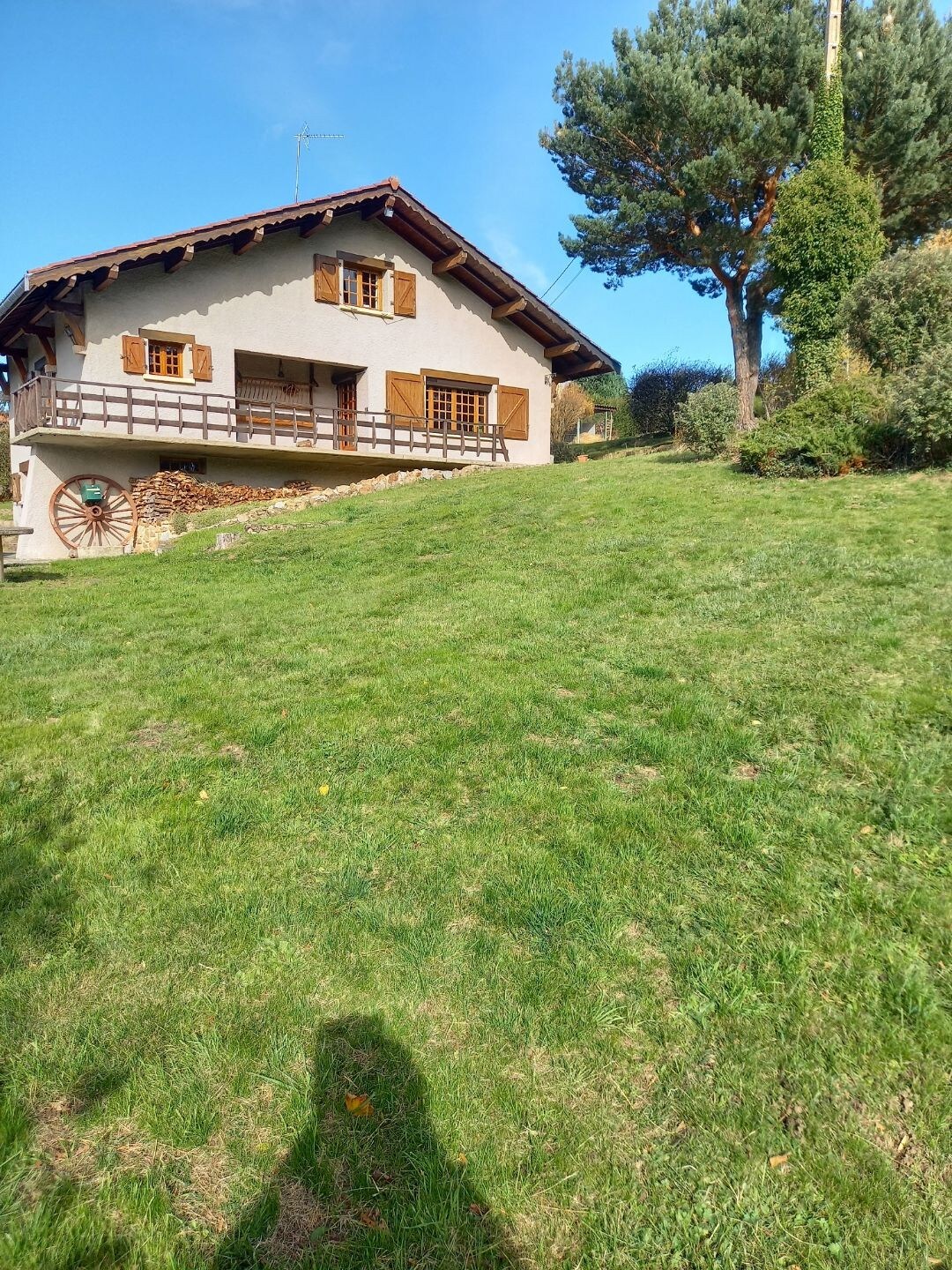 The house is a recently built and welcoming chalet. You will enjoy a region ideal for hiking or discovering a rich local heritage. Located in a peaceful hamlet, you will be welcomed by Sam and Krisha, our friends and English neighbors. At 10 minutes from the highway (A89), between Lyon and Clermont-Ferrand, the house can welcome 4 adults or a family with two children properly. The breathtaking view invited us to built this house, we want to share it with you...