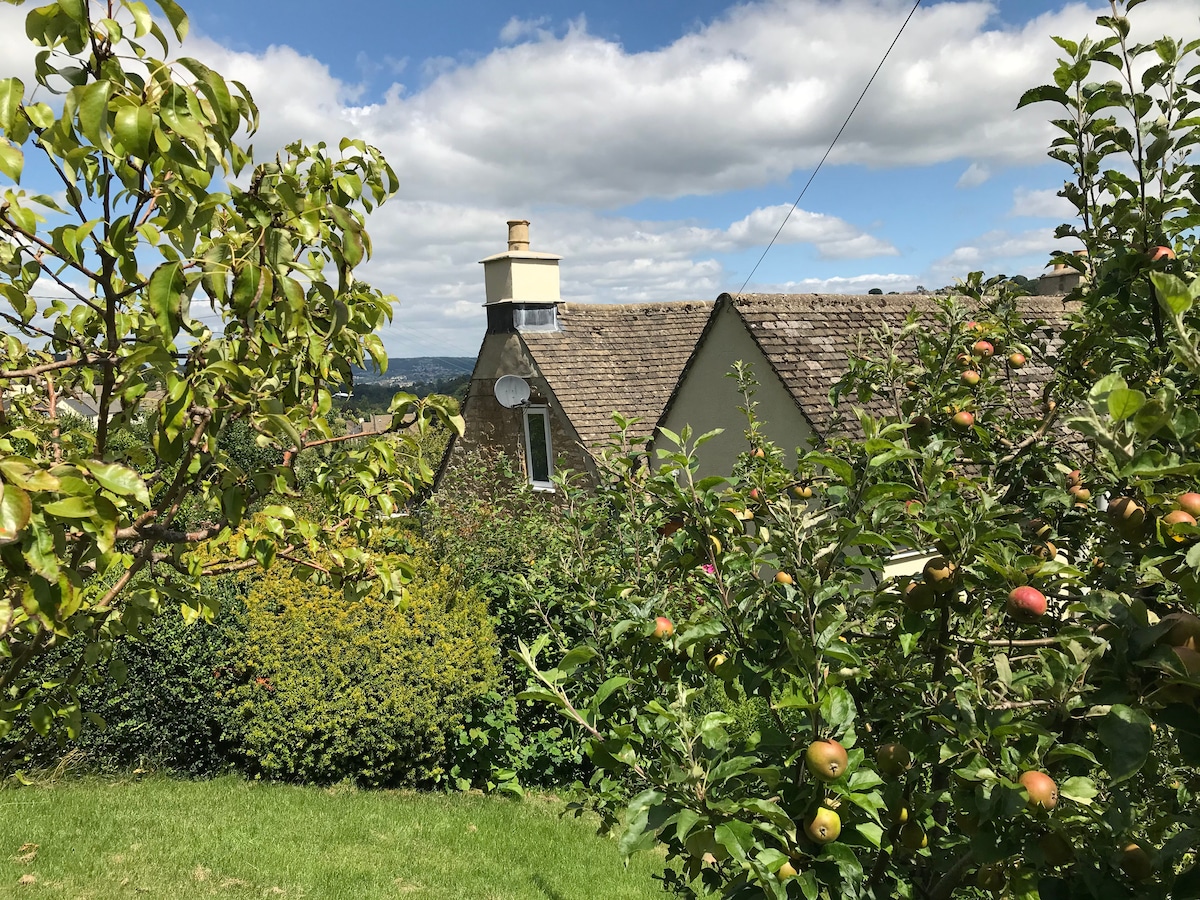 Apple Tree Cottage is an airy, yet cosy 1 bed studio cottage. Great base for exploring Cotswolds. Many local hiking opportunities. Great views from upstairs, lovely private patio with garden/valley views. Free off-street parking. Upstairs, beamed living/bedroom with comfy bed, Smart TV& WiFi. Downstairs, well equipped kitchen-diner, shower room/toilet. 10-15min walk to Nailsworth centre with many eateries. Unfortunately unsuitable for those with mobility issues due to stairs/low pitched ceiling.
