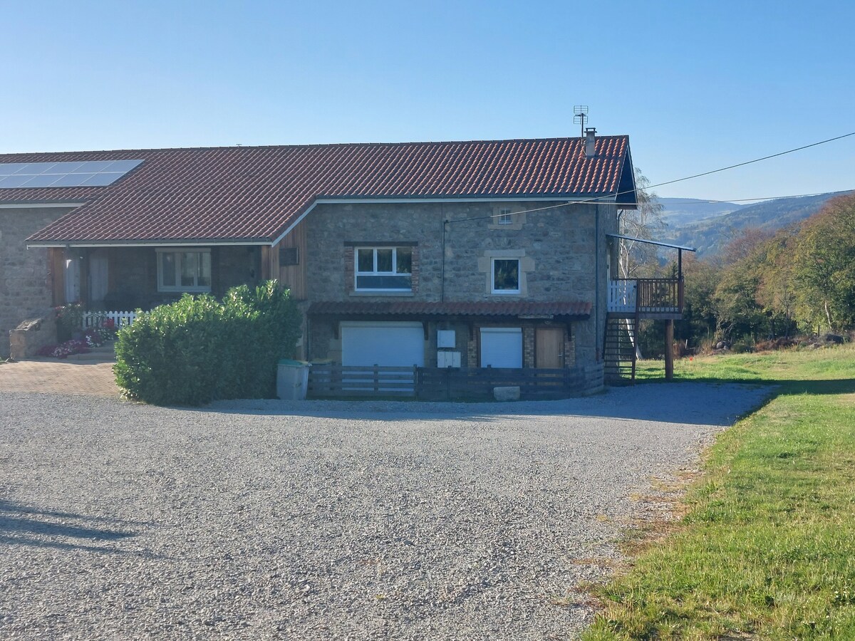 Comfortable gîte a few steps from the Chalmazel ski resort. Lots of sports activities and hiking. Local gastronomy to discover. Many sights like the Bâtie d'Urfé, Priory of Pommier, Volerie du Forez. A terrace for relaxing, for your barbecues and aperitifs. A play area with slide and swing is available for the little ones. Come and discover the quietness of the countryside a short walk from the city. The exteriors are shared with us.