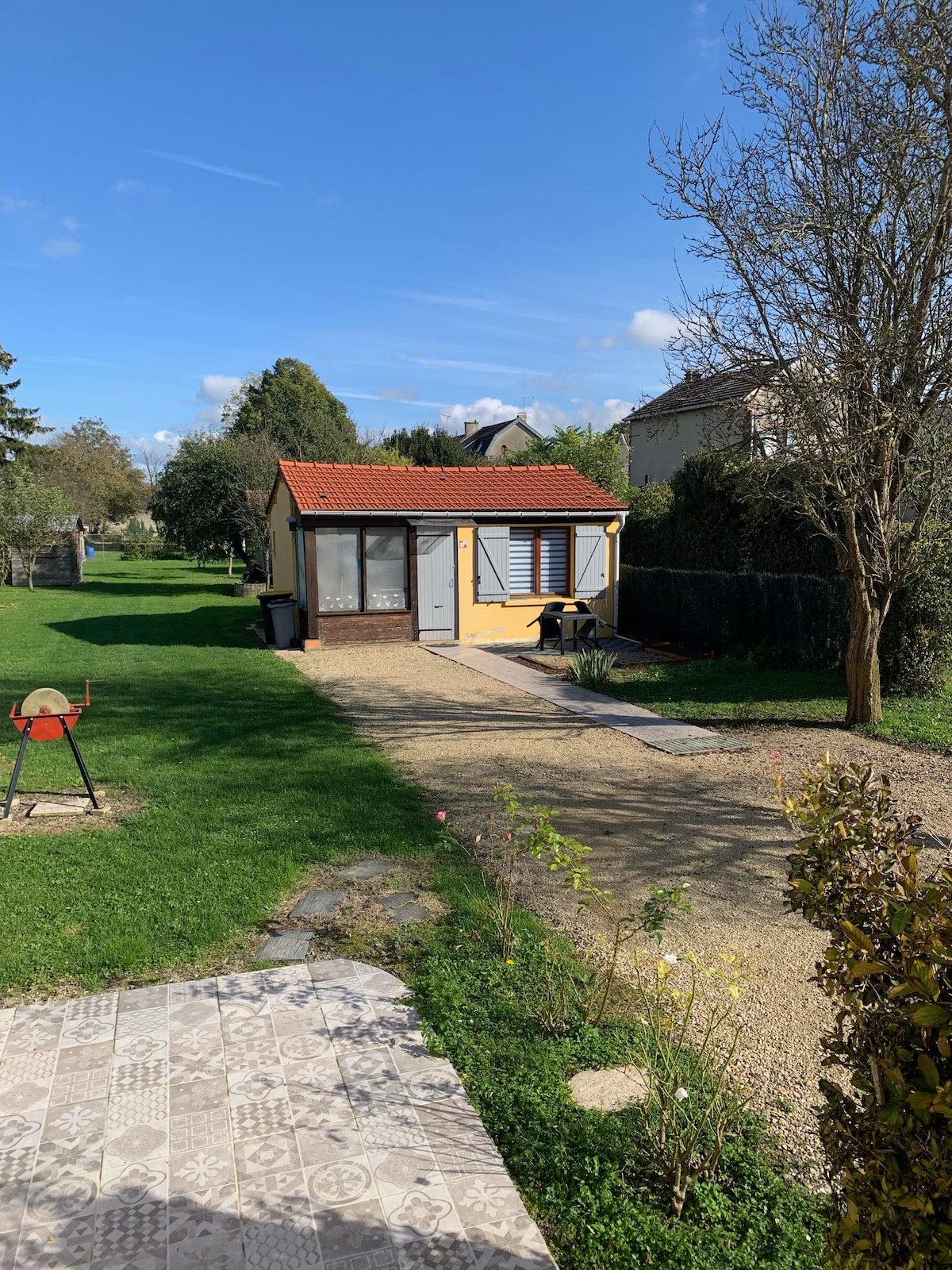 We are pleased to welcome you to our small cozy 35 m² cottage, located in an annex of our property. Located 20 km from Lake Der, the accommodation has two terraces, one of which is covered to enjoy the sun from morning to evening. The cottage is completely independent and has its privacy (not overlooked by the adjoining owners' house). Guests can enjoy the orchard and 3500 m² garden.