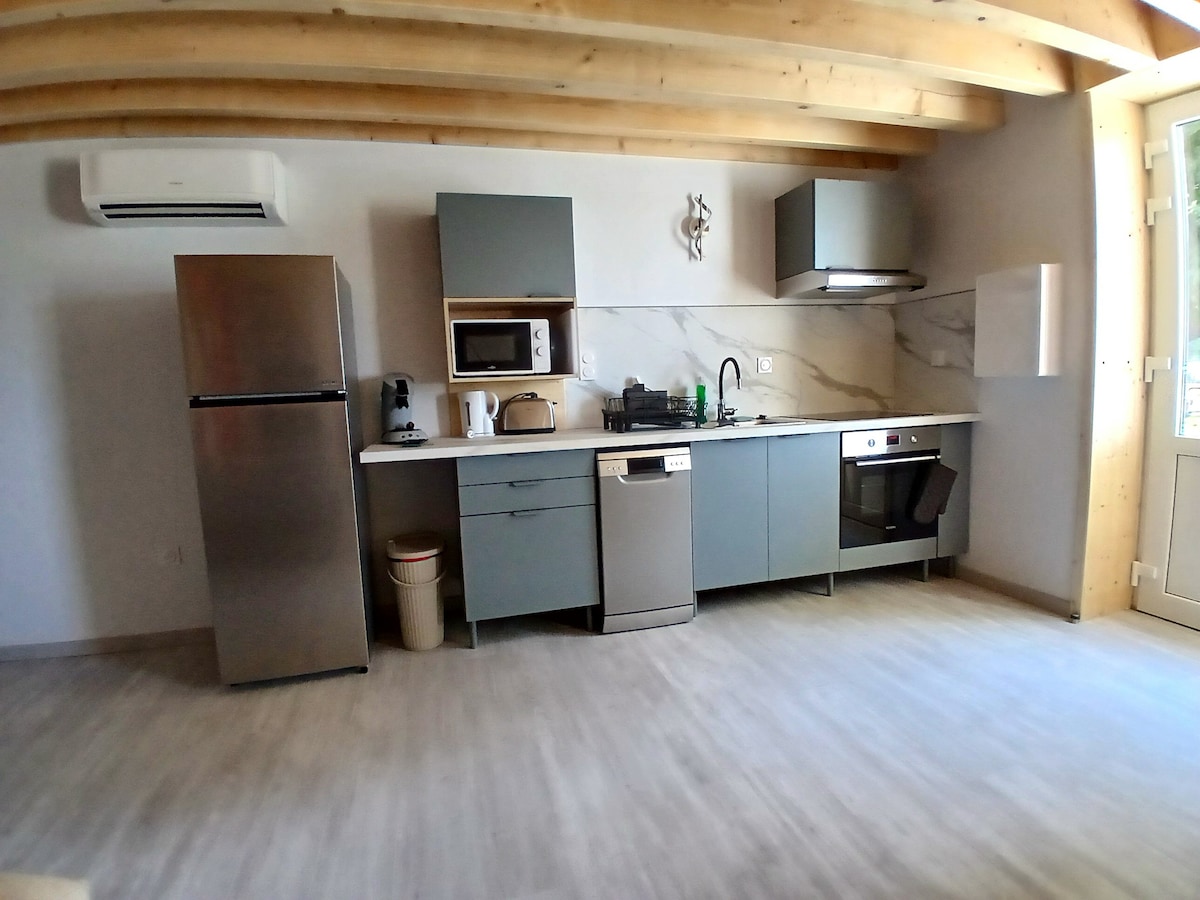 Old farmhouse renovated on 2 floors: great calm, all comforts! Nuits-Saint-Georges 10 min, Beaune 15 min, highway 10 min. Ideal base for visiting the vineyards. Wood-burning stove in front of a large sofa, fully equipped kitchen, 1 double bedroom and 2 single bedrooms, air conditioning, multi-jet walk-in shower, Wi-Fi, 50" smart TV, board and outdoor games, barbecue, among others! Private parking, courtyard and garden. Families welcome!