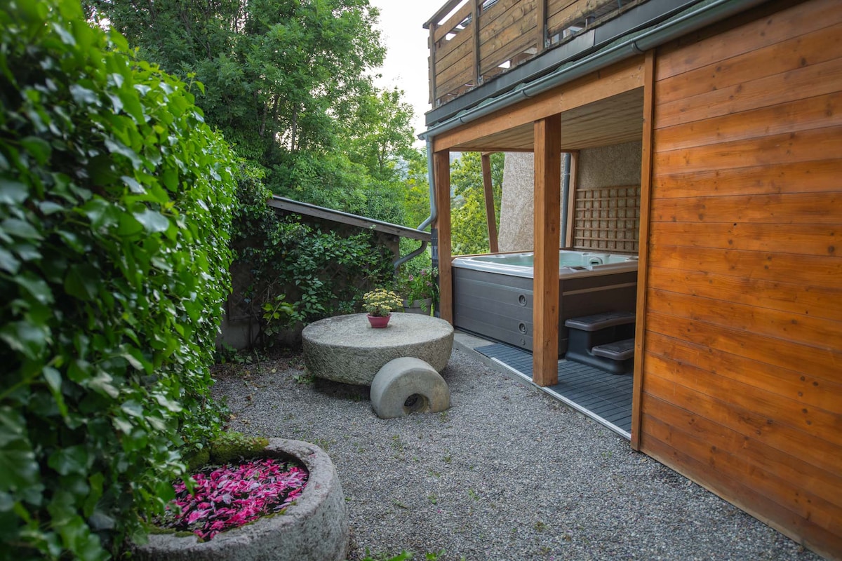 Ideally located in the Parc des Écrins, quiet and surrounded by nature. YAPLUKA enjoy the spring water, the azure sky and your private jacuzzi available all year round (€40 for a 1.5-hour session for 2 to be booked on site). In a 6000 m2 park surrounded by mountains and close to hiking trails and four ski resorts in winter.