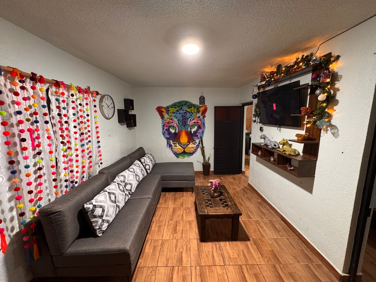 Nice and bright space (apartment type) in El Cerrillo, one of the most beautiful and ancient neighborhoods of San Cristóbal de Las Casas. It is 6 blocks from La Catedral and 3 blocks from the Former Convent of Santo Domingo. The cottage has two bedrooms, equipped kitchen and a small patio for sunbathing or to see the starry sky at night.