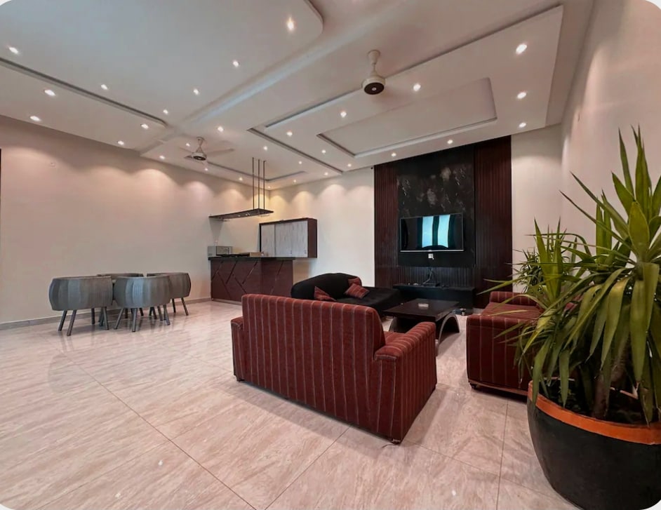Experience modern comfort and luxury at our elegant apartment in Bahria Orchard, offering a peaceful enviornment. The apartment features a cozy queen bed, a fully equipped kitchen--perfect for couples or small families.