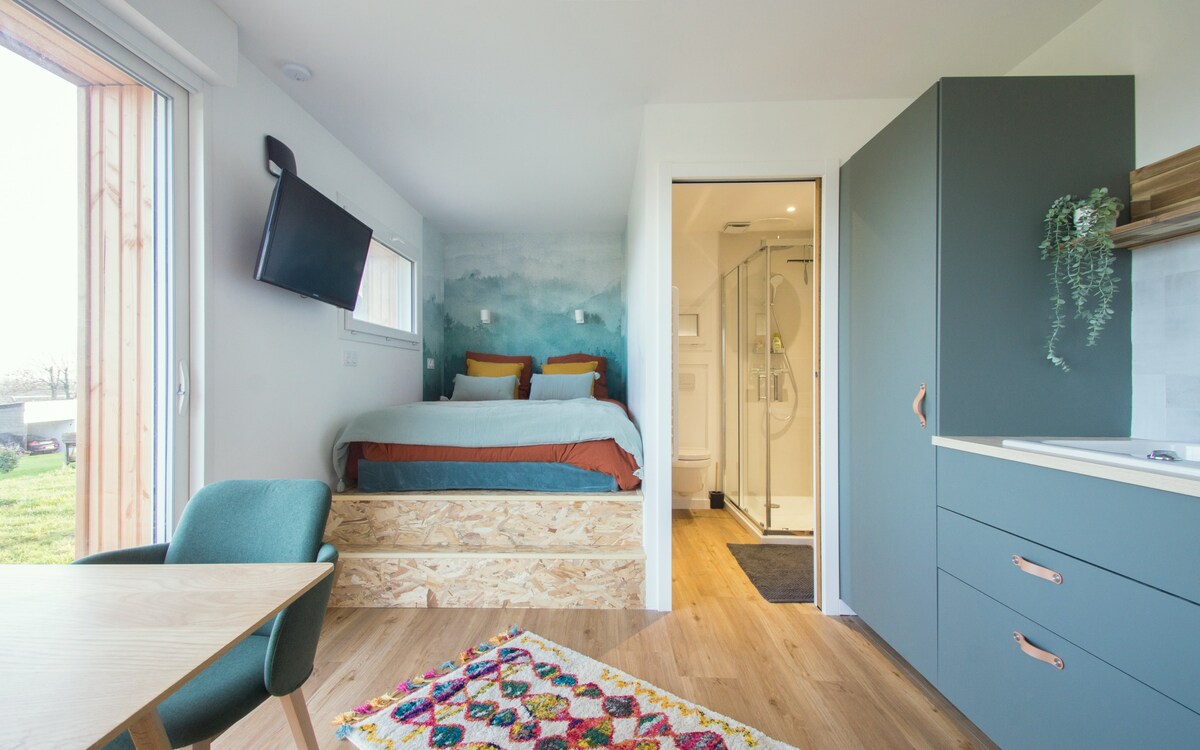 10 Minutes from PARC EXPO and KER LANN Welcome to "PANORAMIK", a charming 19 m2 studio that is totally independent. This comfortable cocoon is nestled at the back of our house and offers spectacular views of Pont-Réan and even as far as Rennes… It is ideal for business trips or tourist stays Just 17 km from Rennes, enjoy the tranquility of a picturesque village at the foot of the hiking trails and La Vilaine! Private terrace and parking space included