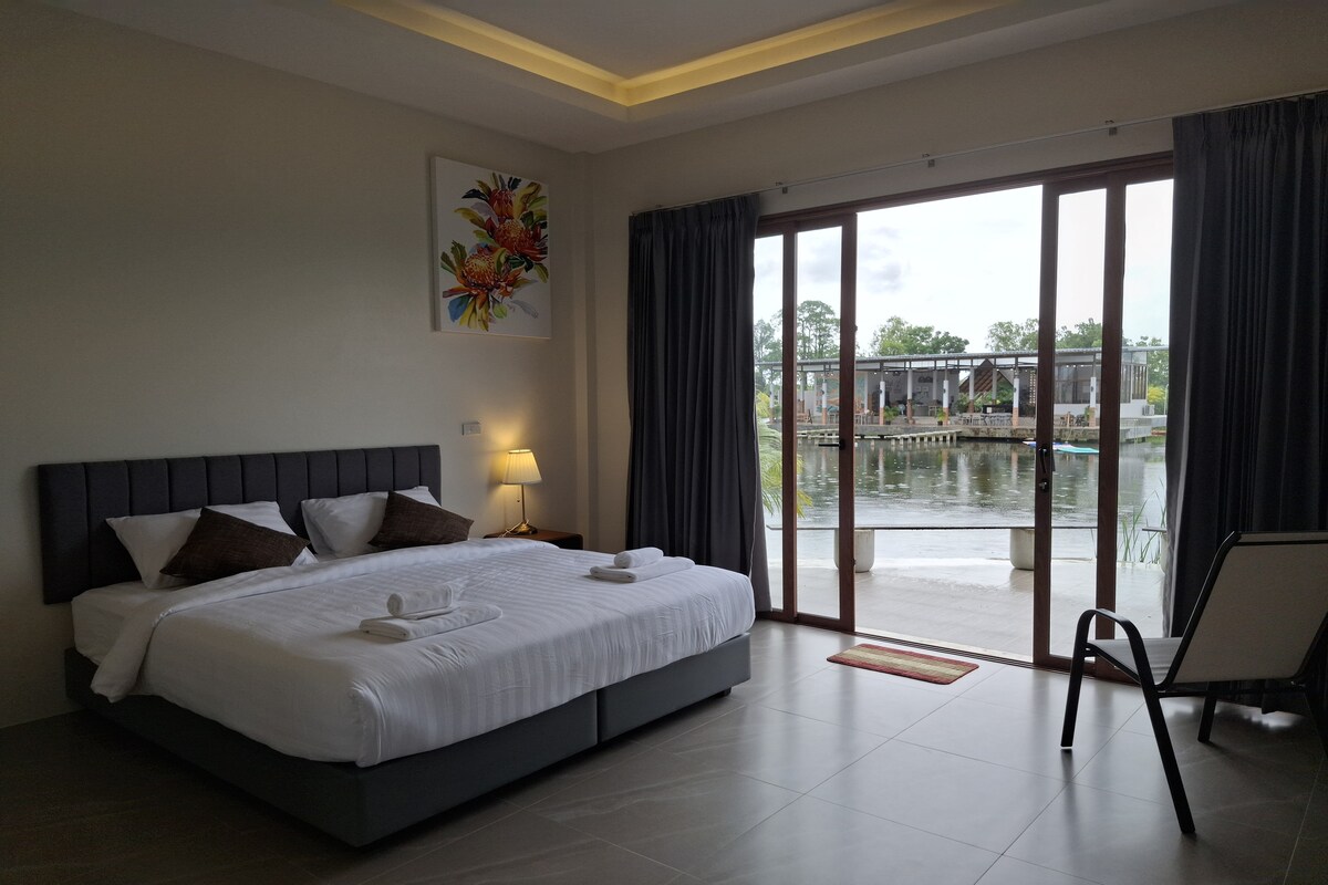 "เสน่ห์ริมน้ำ ใกล้เมือง" ที่พักบรรยากาศดี ติดริมแม่น้ำจันทบุรี สัมผัสความเป็นส่วนตัวเหมาะสำหรับการพักผ่อน พร้อมด้วยสิ่งอำนวยความสะดวกครบครัน ห้องพัก Deluxe River View ห้องพักวิวแม่น้ำ ห้องพักขนาด 25 ตร.ม. ชั้นสอง วิวแม่น้ำจันท์จากชั้นสอง ชมพระอาทิตย์ตก มีให้บริการทั้งเตียงเดี่ยว และเตียงคู่
