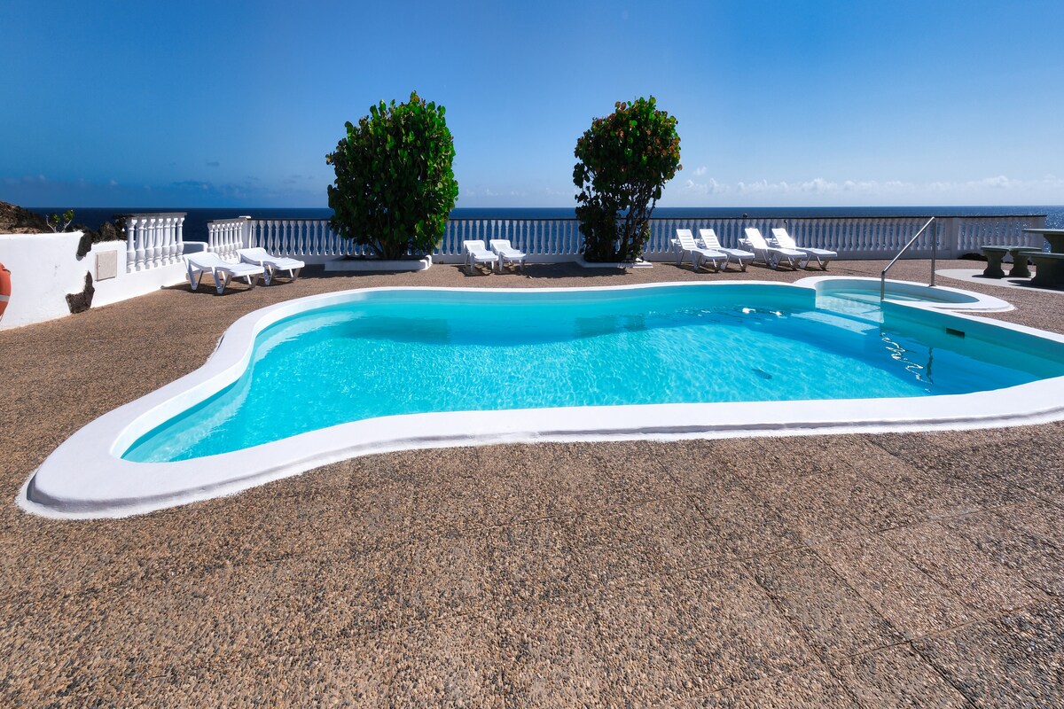 Relax with beautiful sunrises in this apartment with sea views in a small village, directly 1 row from the Atlantic. Your apartment has its own open kitchen and a living-dining room, 1 bedroom with double bed + 1 bathroom. Charco del Palo is a nudist village, everyone can walk around here as they want, with or without clothes. The apartment belongs to a small complex, in total there are six apartments. When you leave the garden, you are right on the Atlantic Ocean.