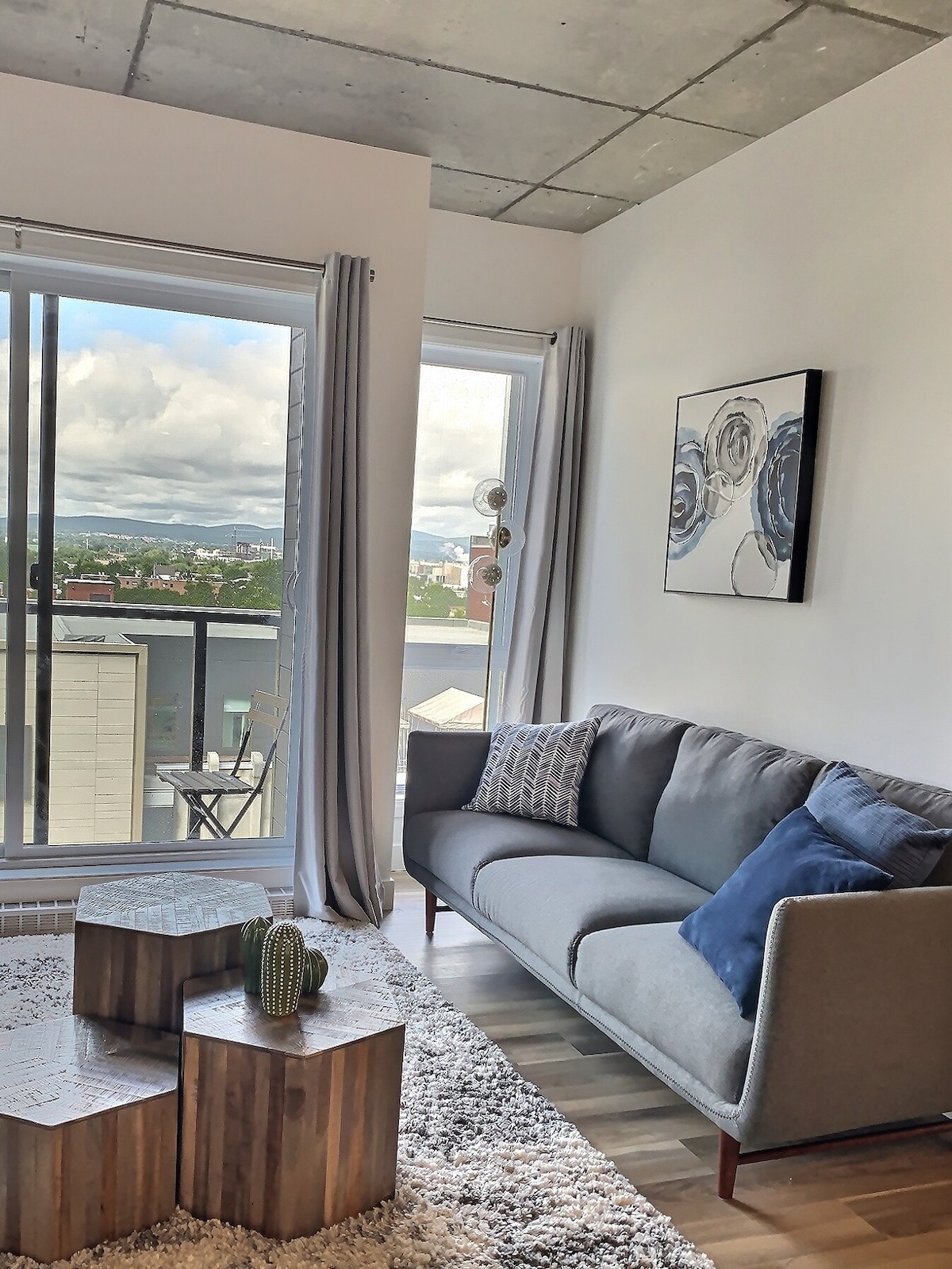 Come and enjoy an unforgettable stay in the heart of the Saint-Roch district in Quebec City. This modern and luxurious condo will charm you as much by its common spaces as by its interior design. ✧️ Indoor Parking included ✧️ Roof terrace with pool, dining area & outdoor fireplace ✧️ BBQ available year-round on the rooftop. ✧️ Fitness room ✧️ Bright and pleasant apartment ✧️ Fast wifi and work space ✧️ Just a 15 minute walk to Old Quebec
