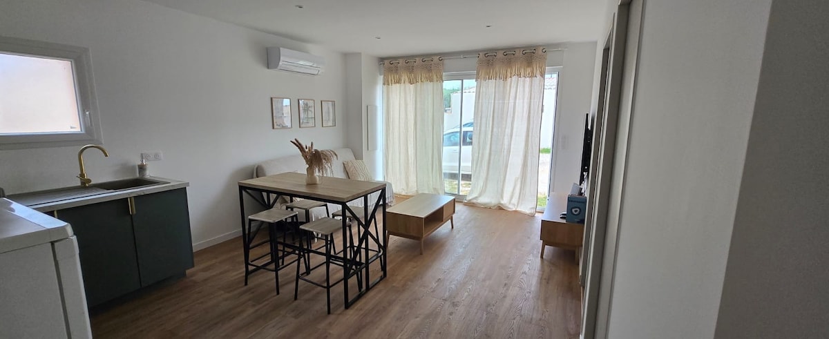 Cozy 30 m3 apartment, new construction. fully equipped, comfortable city center with garden. Close to shops 10 minutes from the beach 10 minutes from the Airport 25 minutes from Marseille 25 minutes from Aix-en-Provence 30 minutes from the Camargue 10 minutes from Aix TGV train station 5 minutes from Magic Land amusement park
