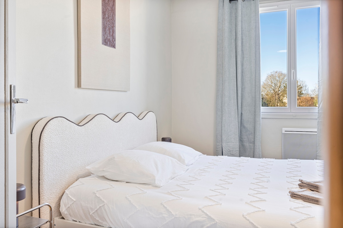 Discover our charming accommodation on the banks of the Indre! Free parking. 7-min walk to Place Monestier with bars and restaurants. Recently renovated and beautifully decorated, it offers a large QUEEN SIZE bed, 2 televisions with Orange TV and NETFLIX, a NESPRESSO coffee machine (pods provided), a washing machine (laundry provided) and a dishwasher (pods provided). Book now to enjoy a unique experience in Châteauroux. Fiber Wi-Fi. Pets allowed.