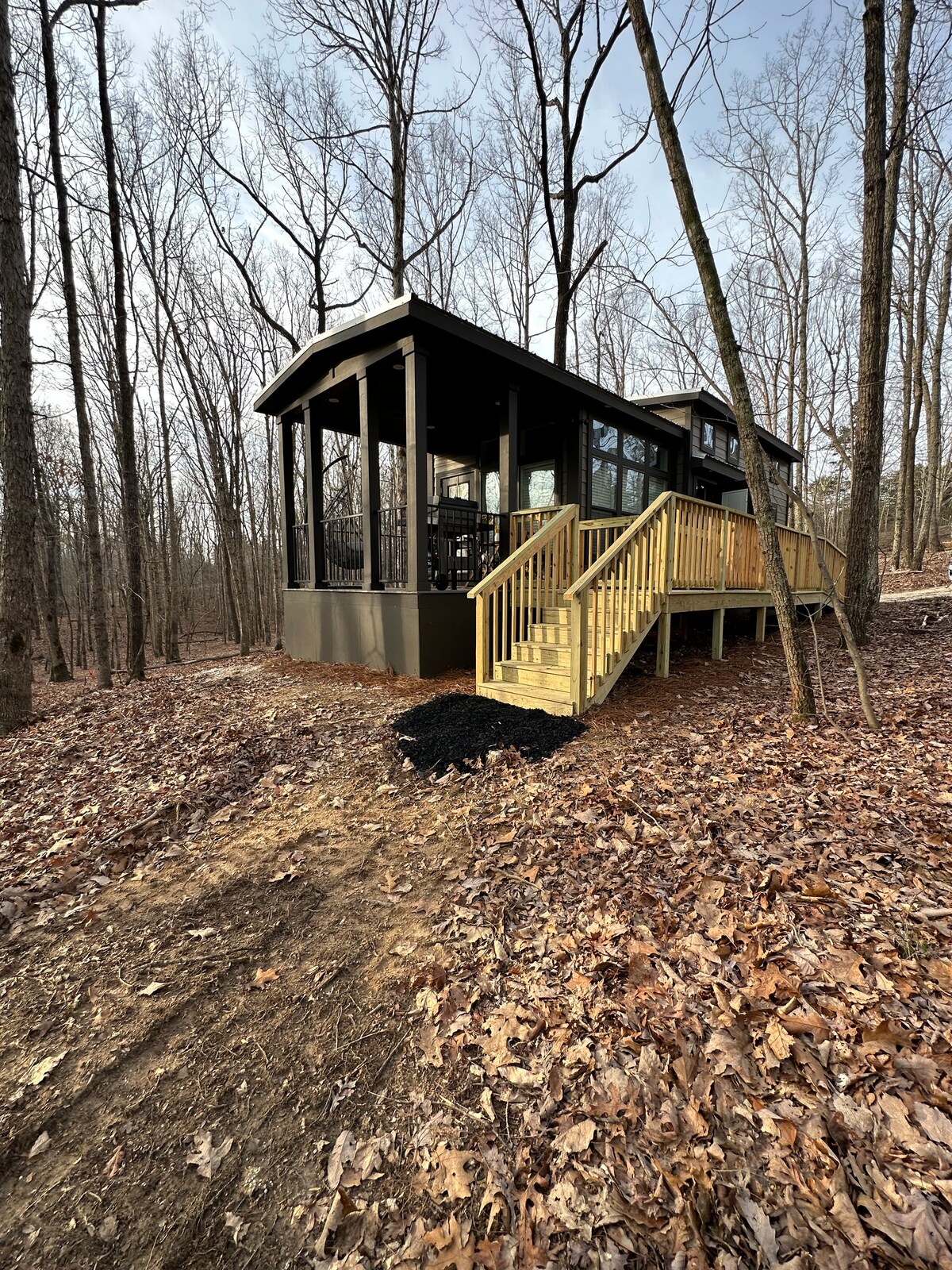 The Shack is an amazing cozy tiny home located on a private wooded lot. Come away to experience the incredible views while either catching the sunrise on the rocking chair front porch, or sipping your favorite drink, relaxing in the evening as the sun sets. Sitting atop Lookout Mountain, you’re invited to experience a couple’s romantic weekend getaway from your busy life, to unplug, and have an unforgettable connection with nature.