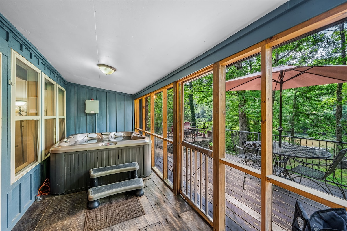 Escape to riverside tranquility at The Shire. A quant, quarried from the river stone cottage nestled on the banks of Little River. Wake up to breathtaking river views from the master bedroom and unwind in the cozy living room, complete with a stone gas log fireplace. Step outside and soak in the scenery from the screened-in deck hot tub or gather around the fire pit on the stone patio for an evening of roasting marshmallows.