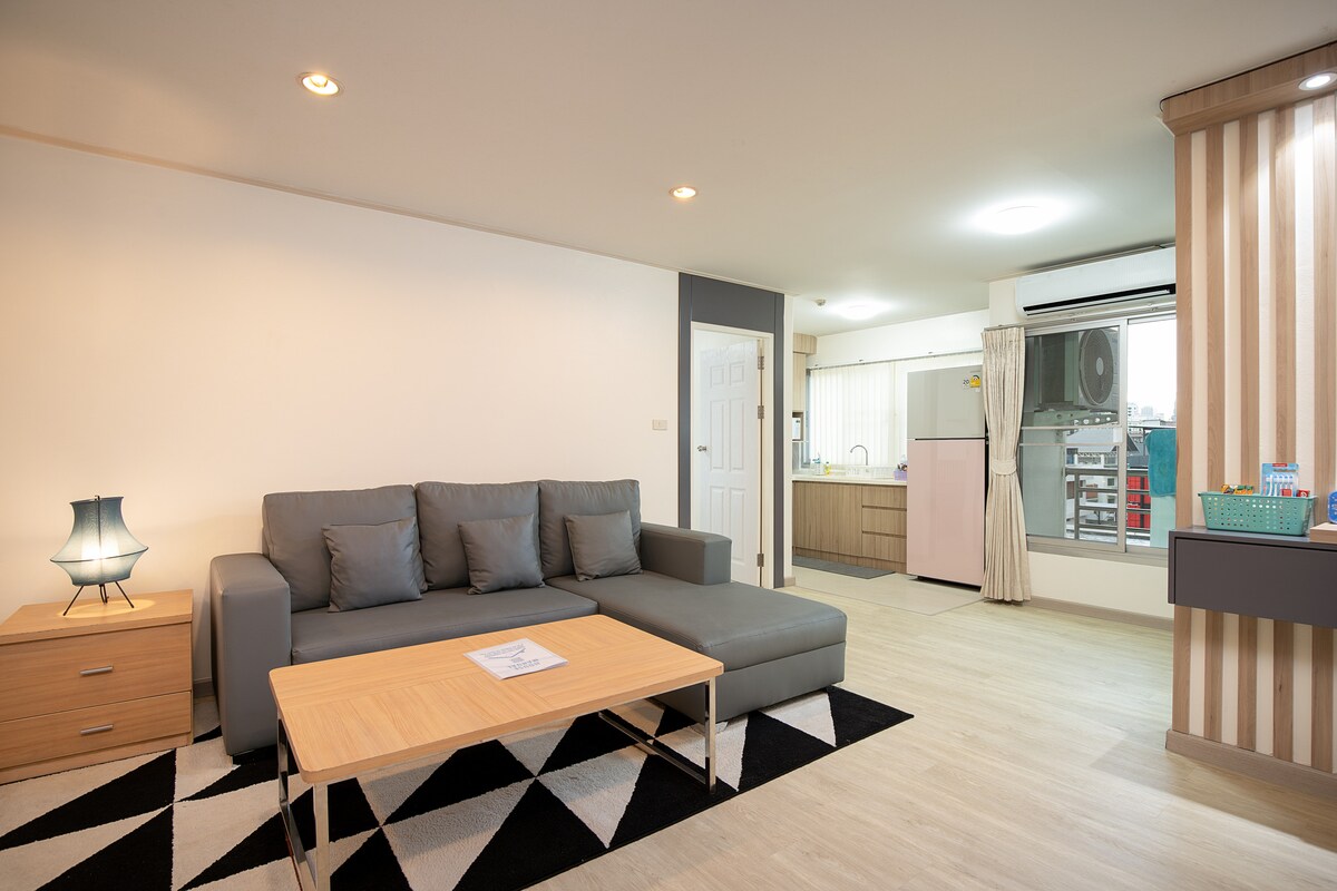 -40 sqm one bedroom with kitchen+washing machine at Bangkok Tryp Building -Not suitable for a child -Non Smoking/ No Cannabis -Near BTS N4 Sanampao, exit#3 (7 minute walk) -Living room with sofa/ private bathroom with shower, hairdryer, toiletries and towels -Air-con/Wifi/ TV/Safety deposit box -Free Luggage storage/ 24 hour Security -Easy check in & check out/ Free parking space -Swimming pool & Fitness *Apartments are on 2-4 floor, corner or middle units (depends on availability)
