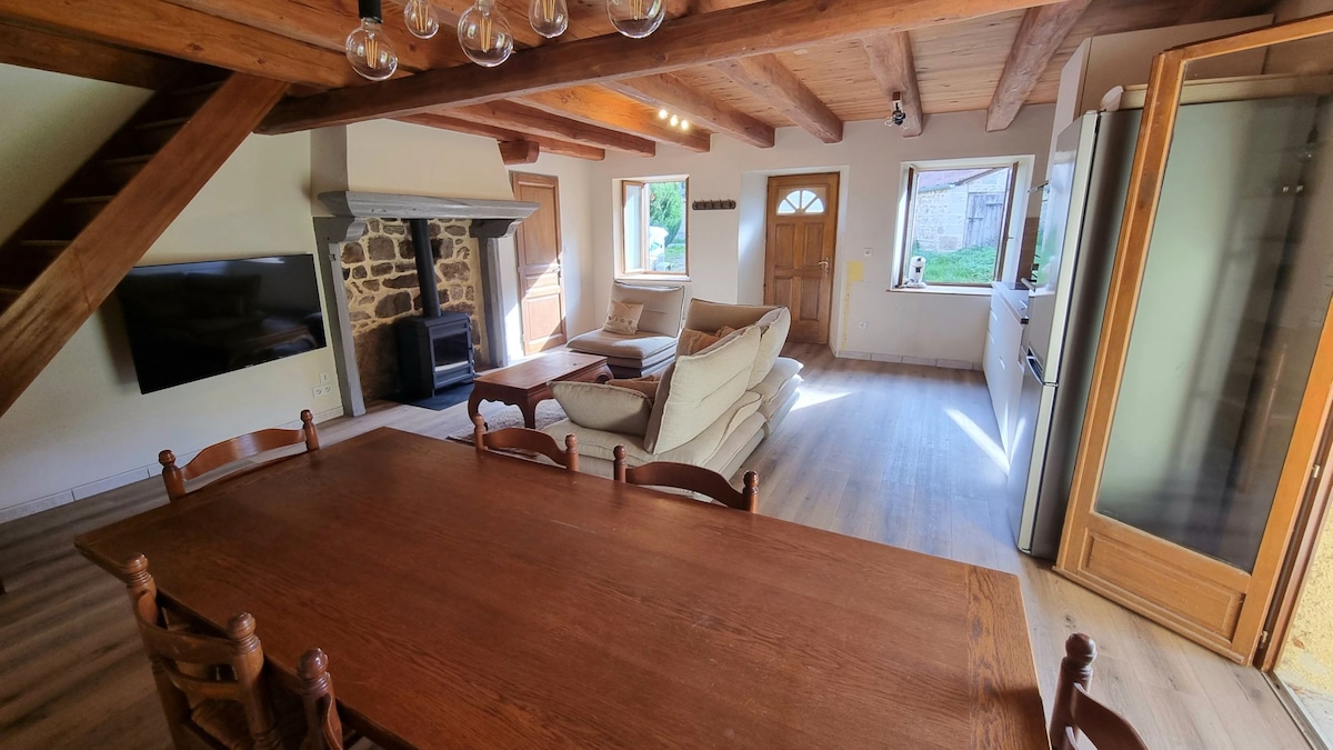 Located in the heart of the beautiful countryside of the Livradois Forez Natural Park. This peaceful accommodation offers all the comforts you need to rest, regroup or recharge your batteries for families or groups of friends. The accommodation is equipped with: ⭐ A large living room ⭐ A bedroom with a 160 cm bed ⭐ A bedroom with a 160 cm bed ⭐ A bedroom with 4 beds 90 cm ⭐ A room with a 140 cm bed, TV... A living room with fully equipped kitchen, fireplace and sofa