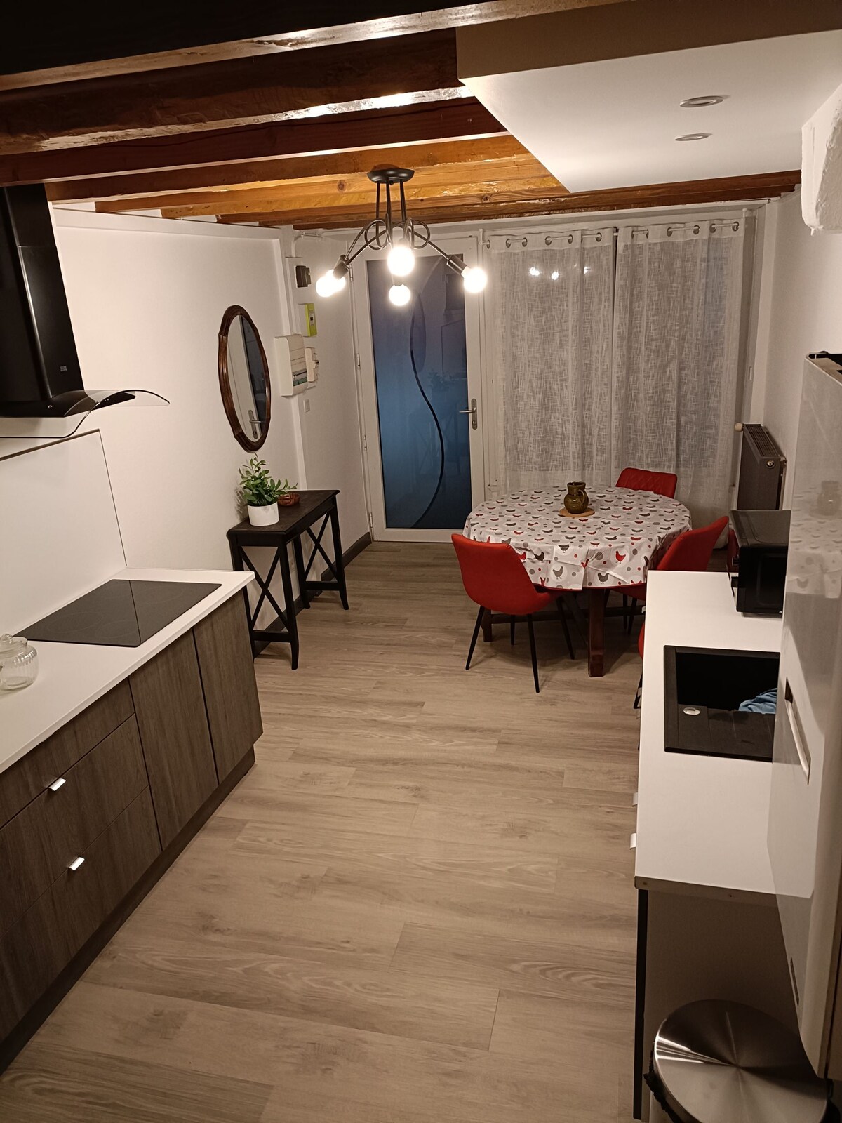 House 65 m² in the heart of the Livradois Forez Natural Park - New - Terrace 15 m² with awning + 200 m² enclosed garden - Pets accepted (1) Upstairs: 1 Bedroom with Claustra - 15 m²- 1 Double bed 140 * 190 1 Bathroom Living Room: Equipped kitchen (Cookeo, split lid, but works perfectly) Sofa Bed 2 People 140x190 Raclette machine Linen provided (Sheets, Bath ) No wifi TV-TNT sat Floor Attention low beam ascent/descent + step