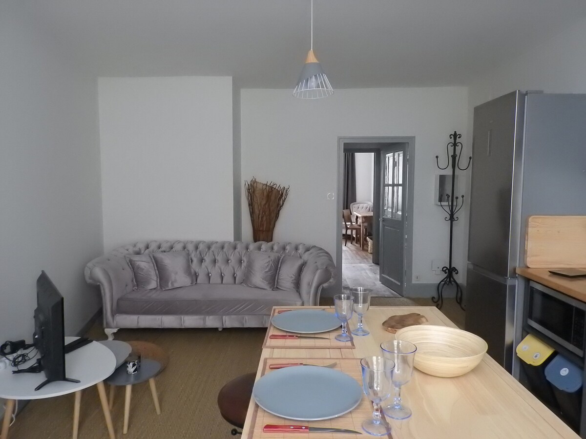 Ground floor apartment of a residential house, in the countryside, quiet. Ideal for 2–3 people, quiet and green environment close to Lake Neuvic (9 km), Ussel (8 km), Meymac with Lake Séchemaille (15 km), Bort-les-Orgues, Cantal, Puy-de-Dôme and Dordogne... start of many marked hiking and mountain biking trails easy parking in front of the house, main room with equipped kitchen, sofa bed and TV, bedroom with double bed and shower room