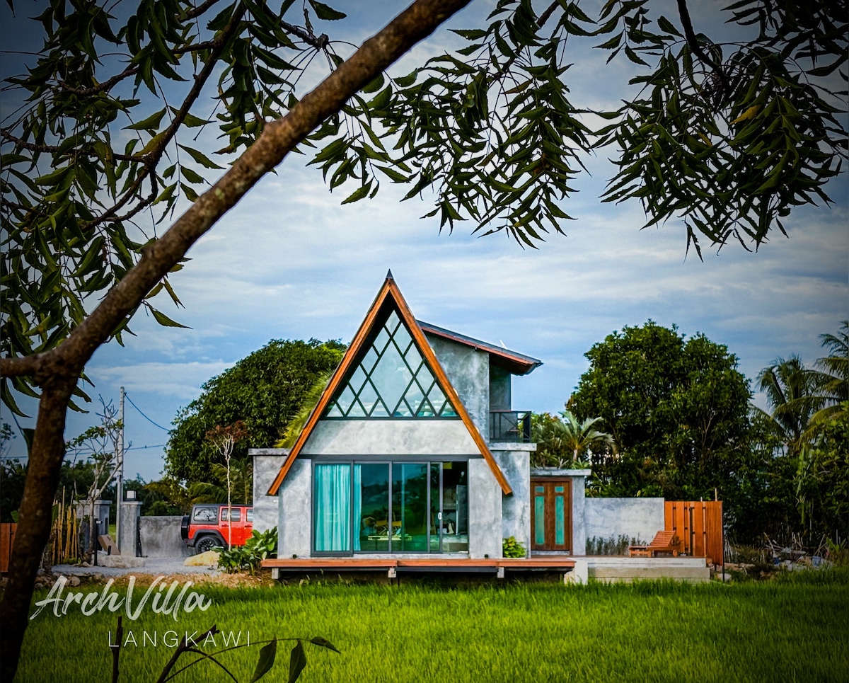 Escape to a paradise at this stunning A-frame villa on the island of Langkawi Experience of modern tropical design meets breathtaking nature. Infinity pool as it blends seamlessly with the horizon, framing the majestic Gunung Raya mountain in a postcard-perfect view. Open-plan living area and fully equipped kitchen Master bedroom on the first floor with a king-sized bed and a private balcony. Just 5 minutes from the airport and 15 minutes from the vibrant Cenang Beach.
