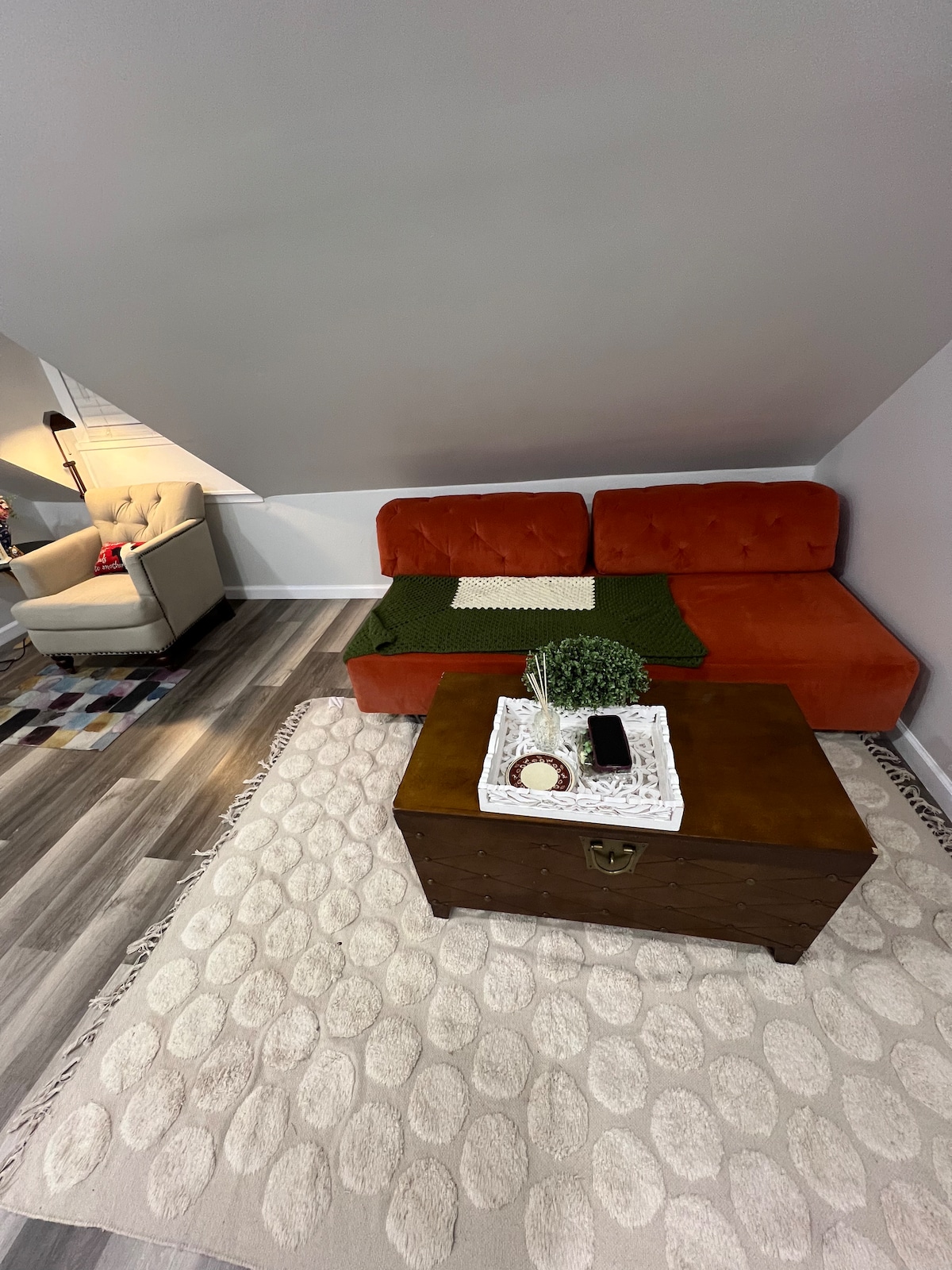 Wake up to the charming sound of birds from the wooded park just behind this cozy retreat. Enjoy the electric recliner and 65” smart TV by the fireplace. Custom-built open kitchen (no oven), comfortable queen bedroom, private full bath, laundry, and fenced backyard for relaxing privacy. Perfect for couples or business travelers—minutes to Kingstowne, Ft. Belvoir, National Harbor, Old Town Alexandria & Washington DC, with easy metro access and two assigned parking spaces.