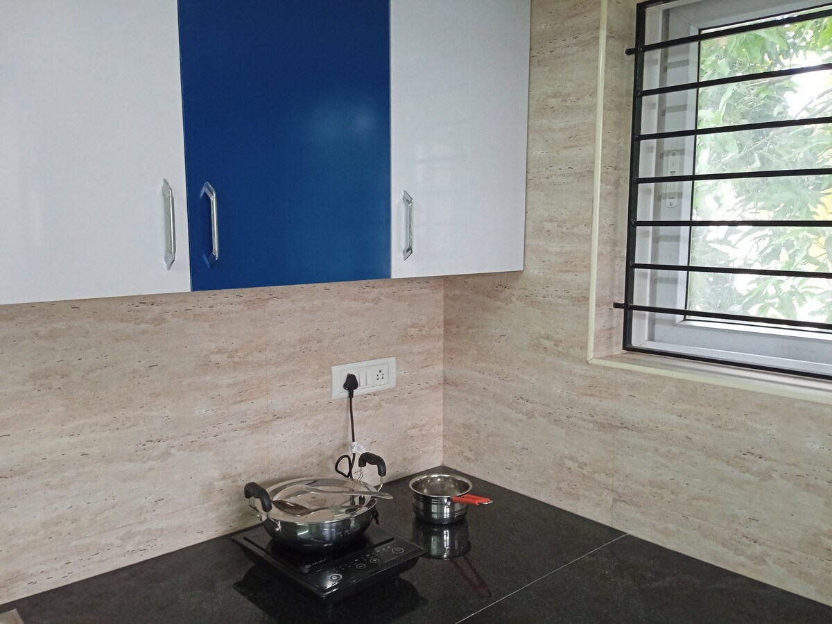 A Modern Olive - Themed apartment with stylish Interiors and comfort. ⚠️ Enter total Guests during booking for the final price. - Couples and Pet Friendly -Perfect for Friends Getaway ⚠️ No Lift and is in 2nd Floor -Fully Air conditioned 2 Bedrooms -Kitchen with all the cooking essentials - Free Wifi -Free Netflix and OTTs - Scooter for rent available Perfect for Long stay and Staycation *Online food delivery to doorstep (Swiggy/Zomato/Zepto ) *Uber/Ola are serviceable