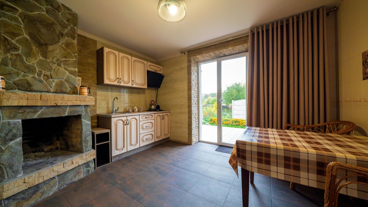 Our house located at riverside of Desna, only 9 kilometers from center of Chernihiv. House has two bedrooms, and its own parking lot inside territory. You get access to riverside. 1 minute from a house located beautiful beach with clear sand. ---- Наш дом находится на берегу реки Десна, всего в 9 километрах от центра Чернигова. В доме 2 спальни, собственная парковка под навесом, печь на улице, беседка, камин внутри, и прямой доступ на воду. В 1 минуте от дома красивый пляж с чистым меском.