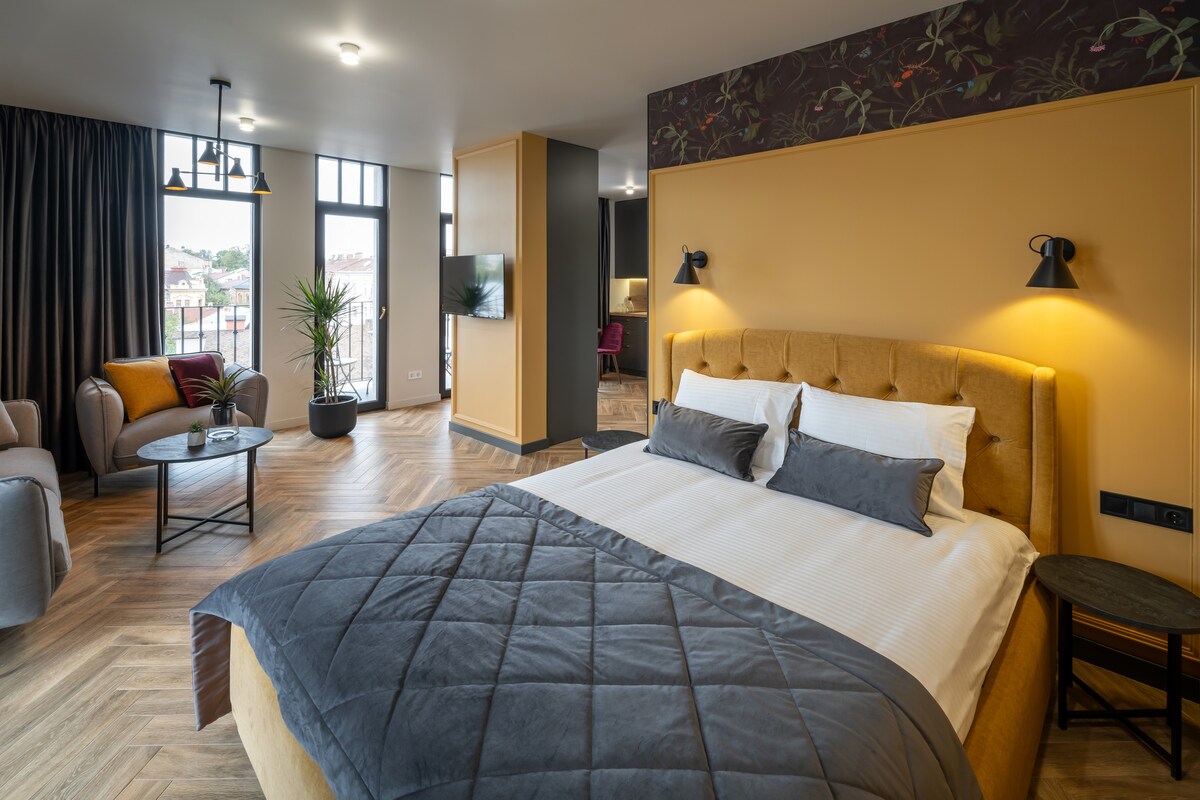 Imagine a comfortable hotel room standing in the middle of a green lawn, from which you can reach breathtaking views, and immediately after the shower you can walk barefoot on the soft grass. This is the kind of connection with nature without losing comfort that we offer to our guests! Thanks to the special shape and design, the apartment is an organic extension of the surrounding landscape, so each guest feels inside the colorful world of animals, birds, and plants.