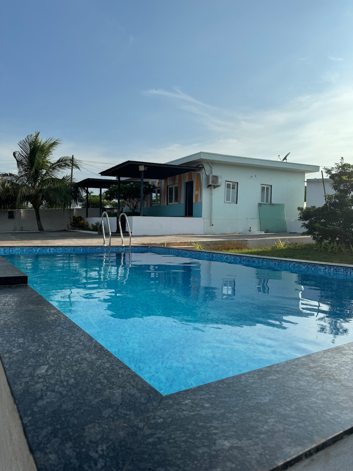 Relax with the whole family at this peaceful place to stay.Fully furnished 3 bhk individual building with pool and indoor games,with out any disturbance right place to take relax with friends and family members