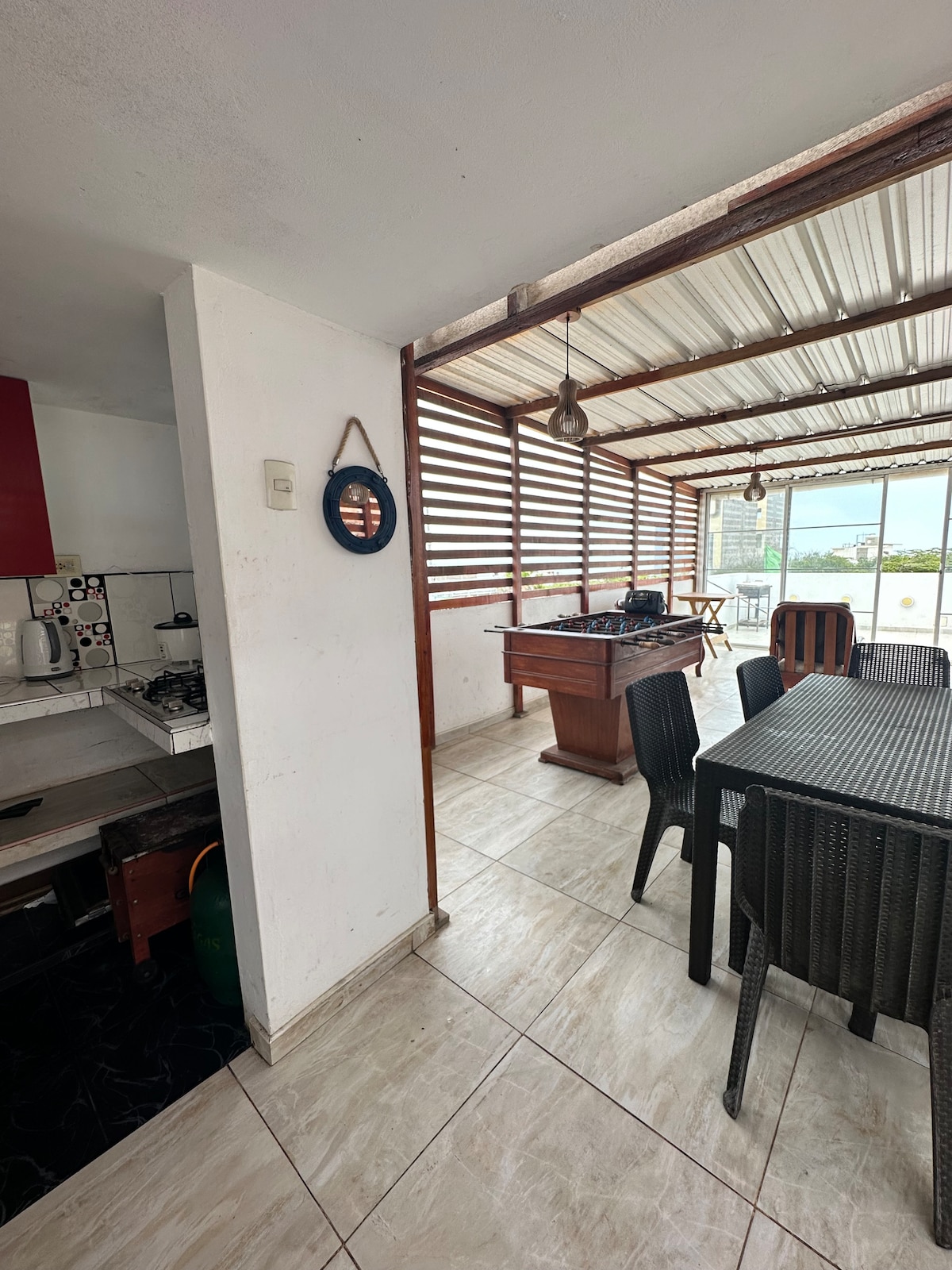Enjoy the ocean and promenade views from this second-row apartment (150 meters from the beach). Everything shown in the photos is for the exclusive use of the guest. We have a mini foosball table, a charcoal grill, and a TV with Netflix. An ideal loft to spend time as a family, with friends, or as a couple. The kitchen is equipped with all the essential appliances. Find us how @sunsetpimentel 🧾We issue a lease ticket in the name of the guest (request it)