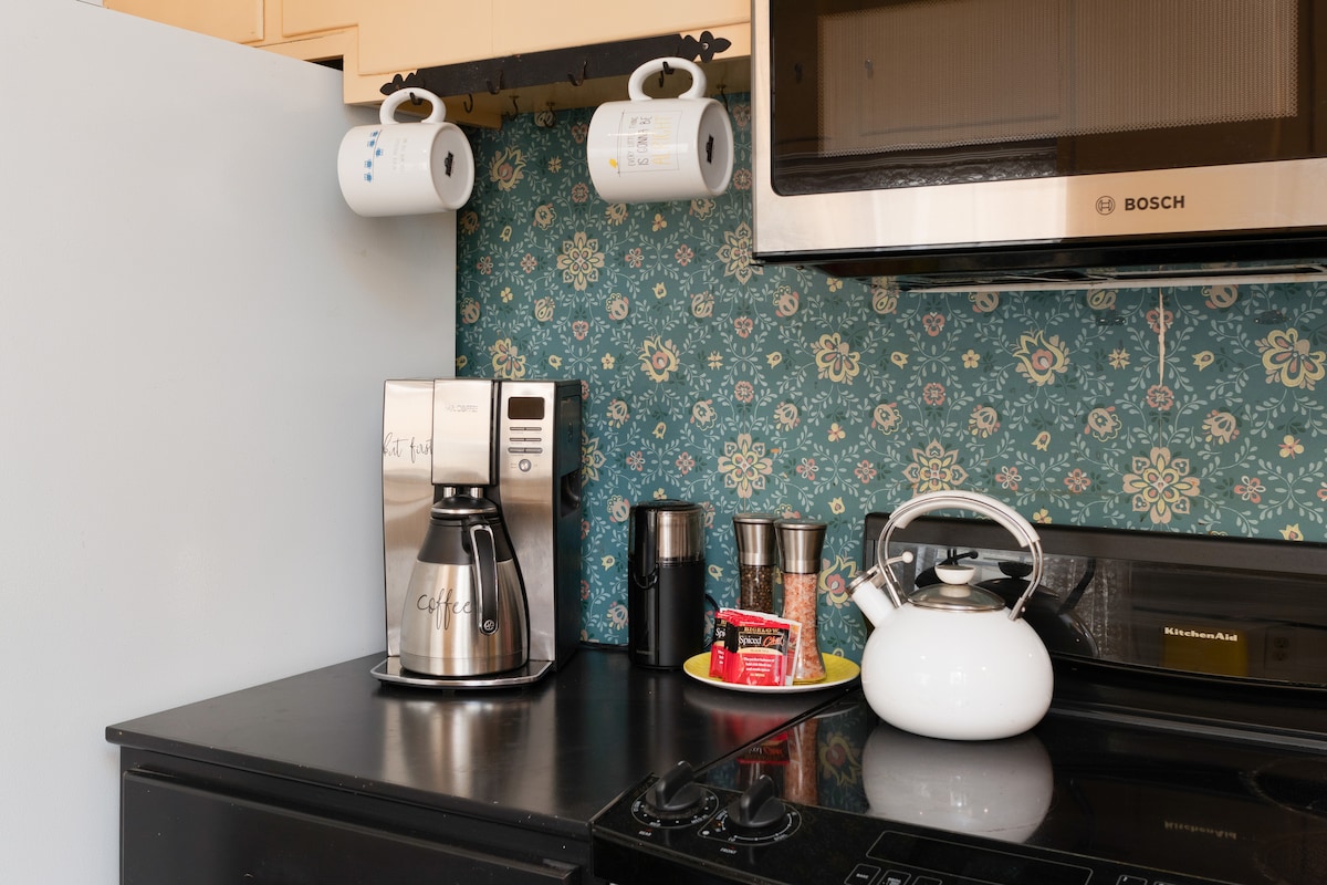 This charming studio is cozy, clean, and beautiful. We are located on the edge of college town, about a mile from downtown, and close to iconic Chico locations (Bidwell Park, Bidwell Mansion, various music and theater venues, local dining and coffee shops, and more). Excellent hiking, biking, bird watching; outstanding dining and shopping; world class university; music and theater; all nearby.