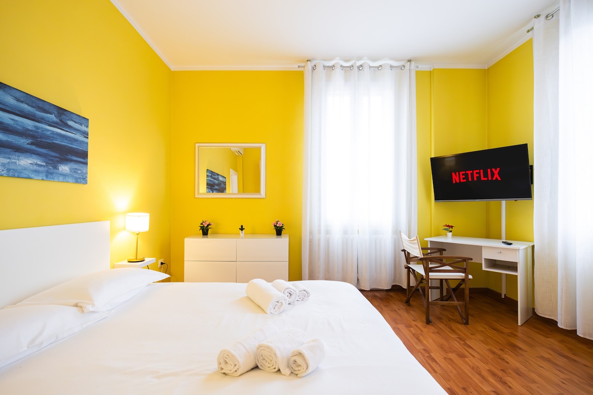 THE IDEAL HOME FOR YOUR LONG STAYS Color warmth comfort silence. The accuracy of family management. In via Castelmerlo, that is, in the heart of Bologna, but outside the traffic-restricted zone. Free parking nearby. 6 bus stops from the historic center, 800 meters from the Sant'Orsola hospital. Fast connections to the station, airport and fair. Independent heating, air conditioning, mosquito nets, ultra-fiber internet, flexible check-in.