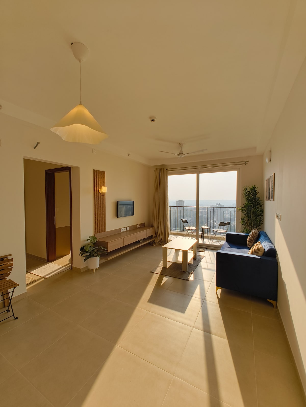 Bright 1BHK with a Cozy Sunset View Balcony
