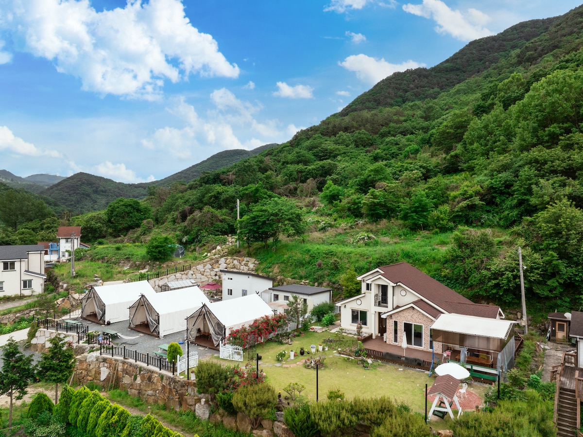 This is my own healing camp, Dogok Sanbang, hidden above the village of Dogok Solbang, in a quiet mountain 500m above sea level. It is a place with good air and a very good view because it is located in a high mountain.Wildflowers in spring, green leaves in summer, colorful autumn leaves and buckwheat flowers in autumn, and silver scenery in winter. This is a private accommodation consisting of two beautiful houses for those who want to leave good memories while healing with their families and lovers in a place where the four seasons are beautiful. Dogok Sanbang provides a comfortable resting space where you can quietly build your own memories without any surrounding facilities nearby.