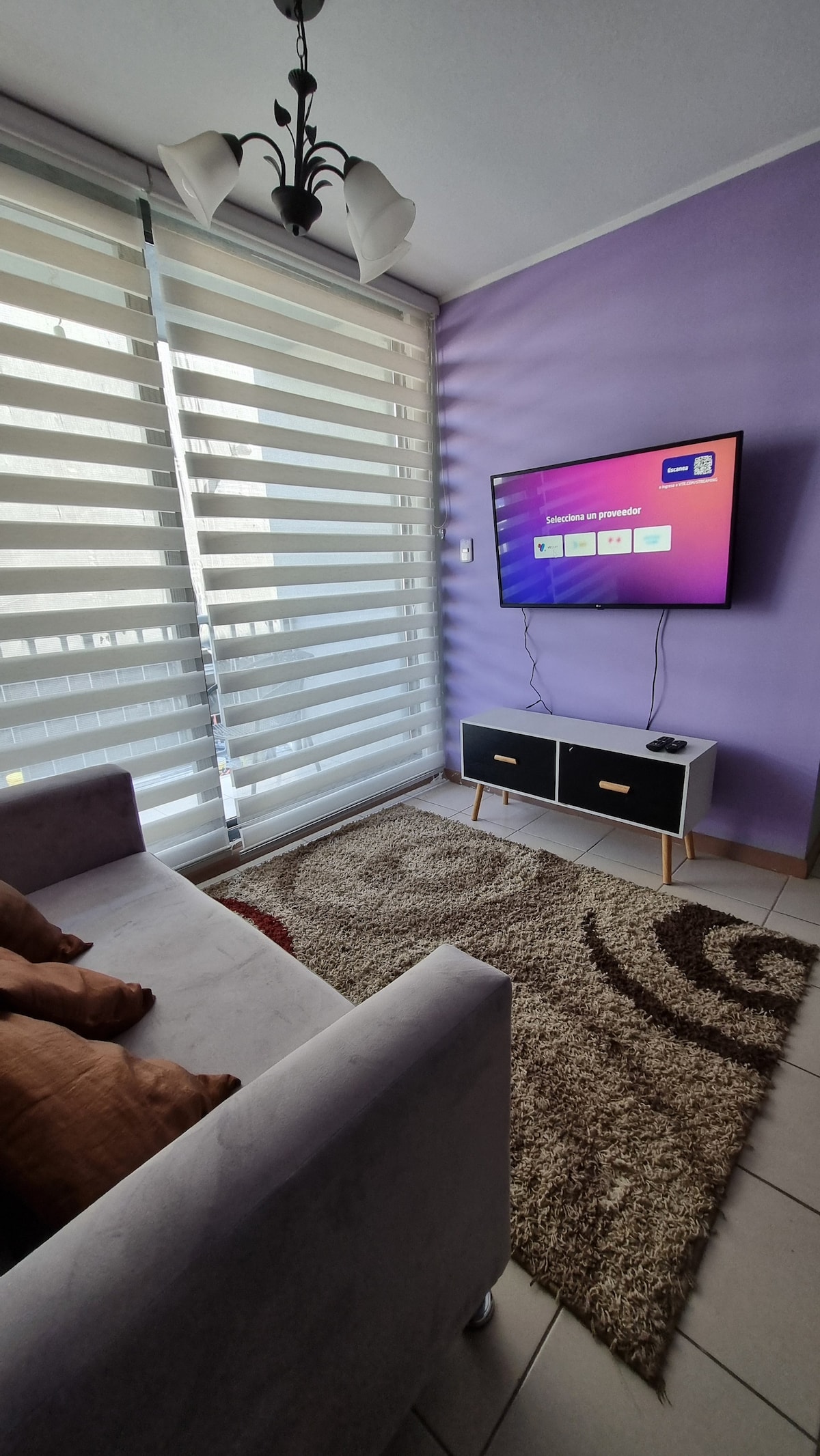 Residential apartment with excellent location, easy access to Route 5, very quiet sector, 1 block from Jumbo, pharmacy, and bus terminal, 5 minutes from the Center, train station and Chillán Cathedral, 1 block from Easy and Inacap, 5 minutes from the Marina del Sol Casino. Good transportation to different points of Chillán. You can get around using Uber, and it also has free indoor parking. The apartment is 85km from Nevados or Termas de Chillán.