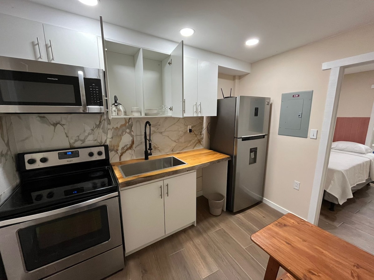 This beautiful apartment has one bedroom, living room, dining room, kitchen, and bathroom. The whole apartment is fully equipped and private. It is located in a quiet complex. You have access to a laundry room. It does not have parking, but we offer you one, half a block away. In addition, you have access to bus stops, supermarkets and the best places in the city just a few blocks away.